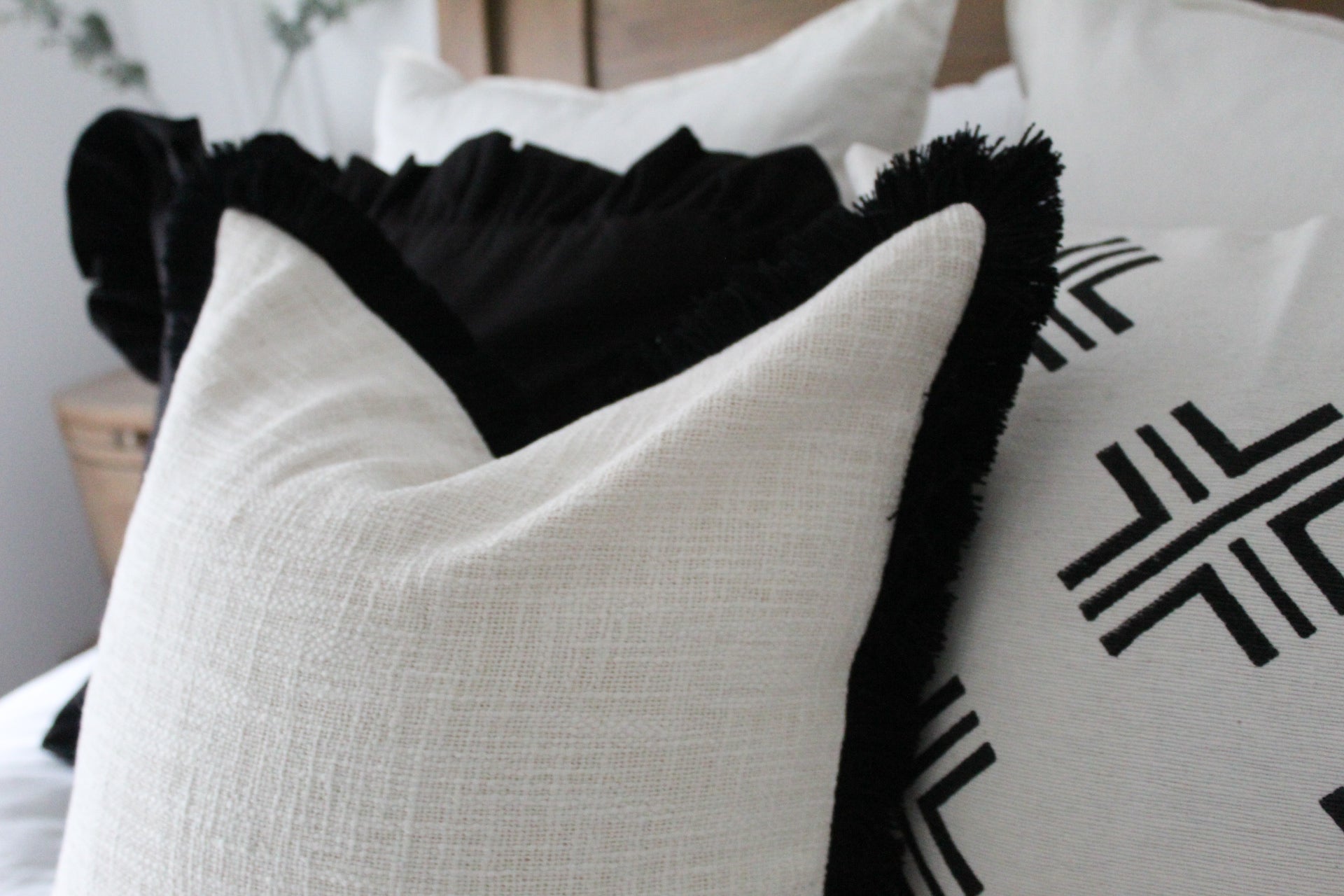 Beige and Black Fringe cotton cushion with duck feather insert 45x45cm