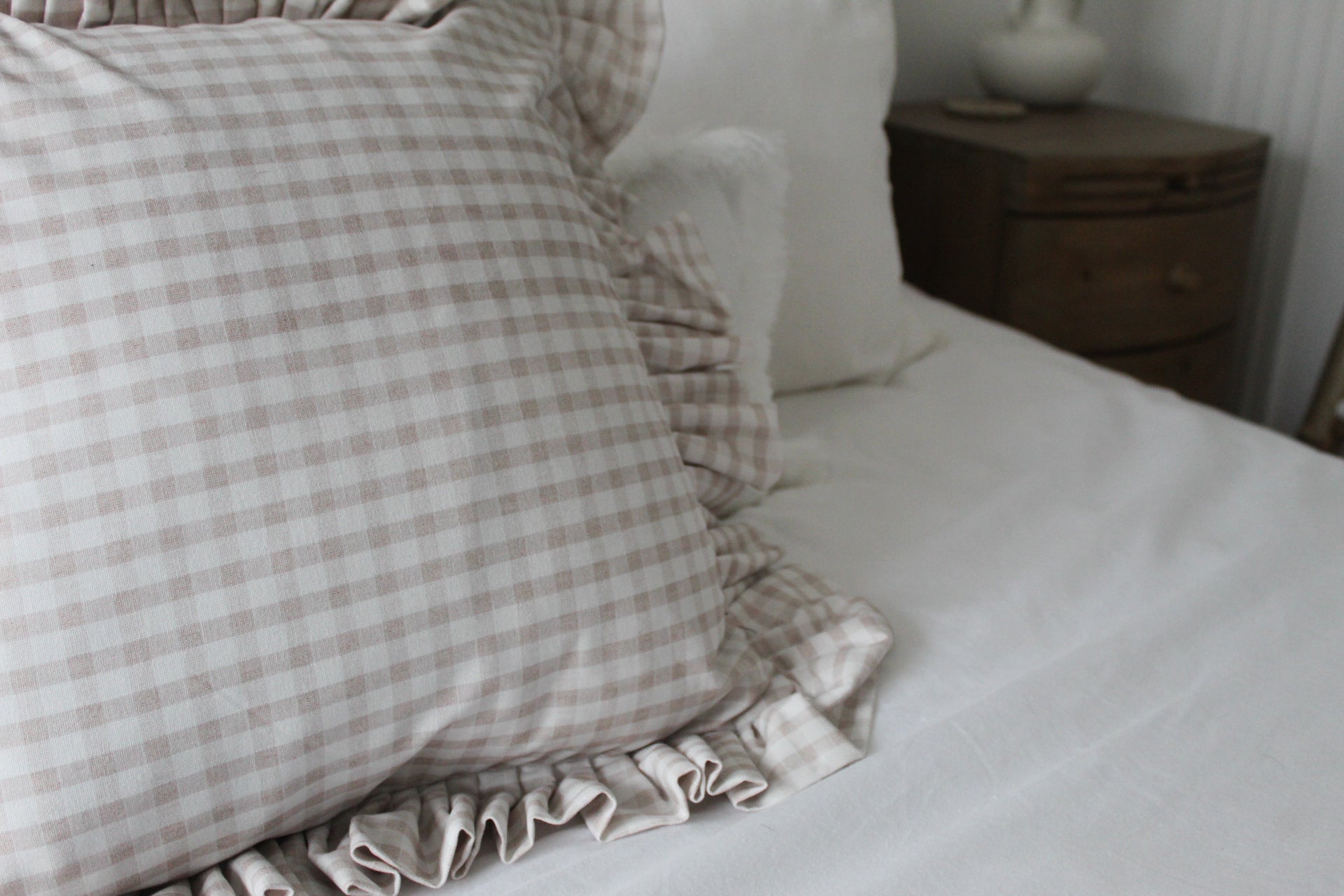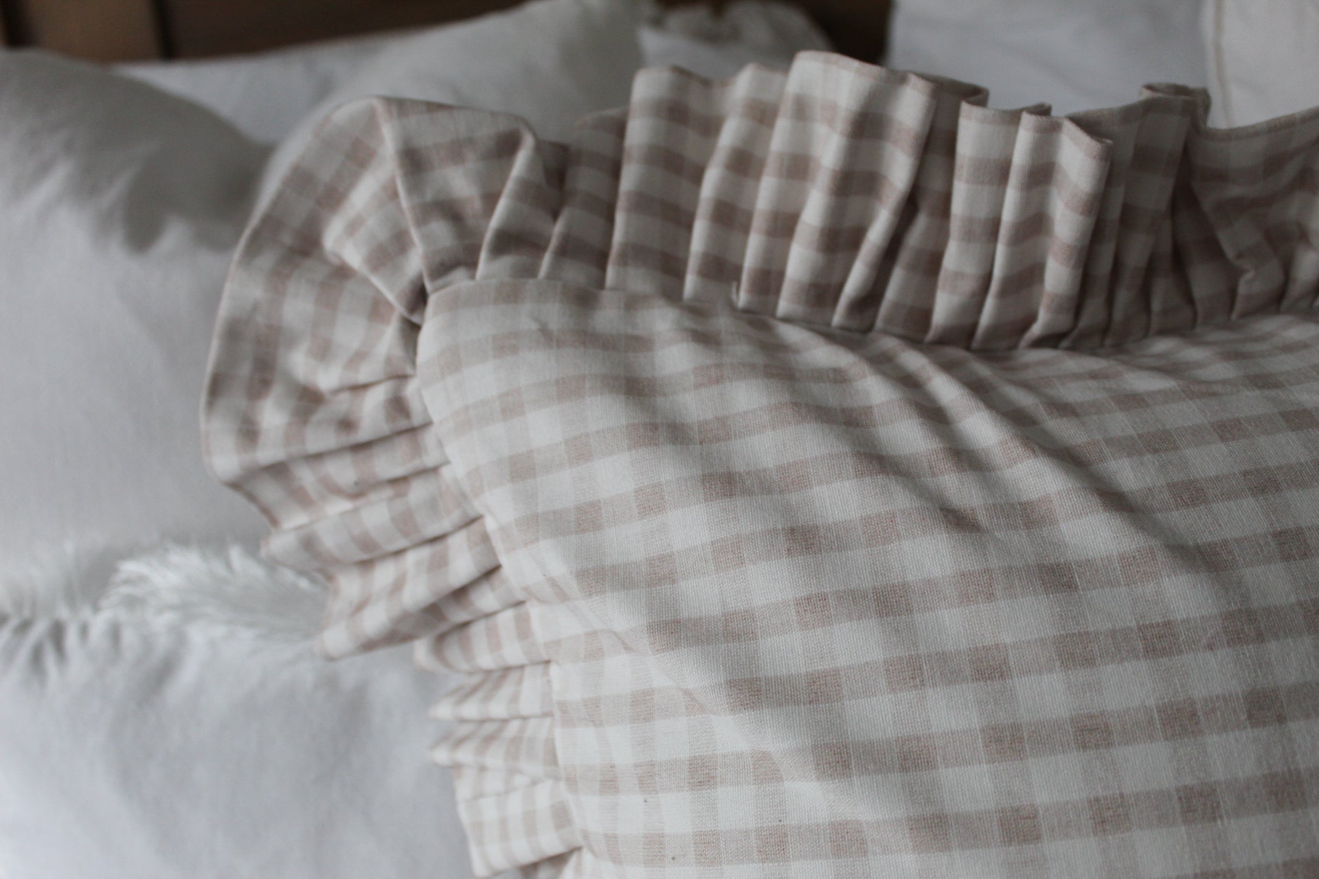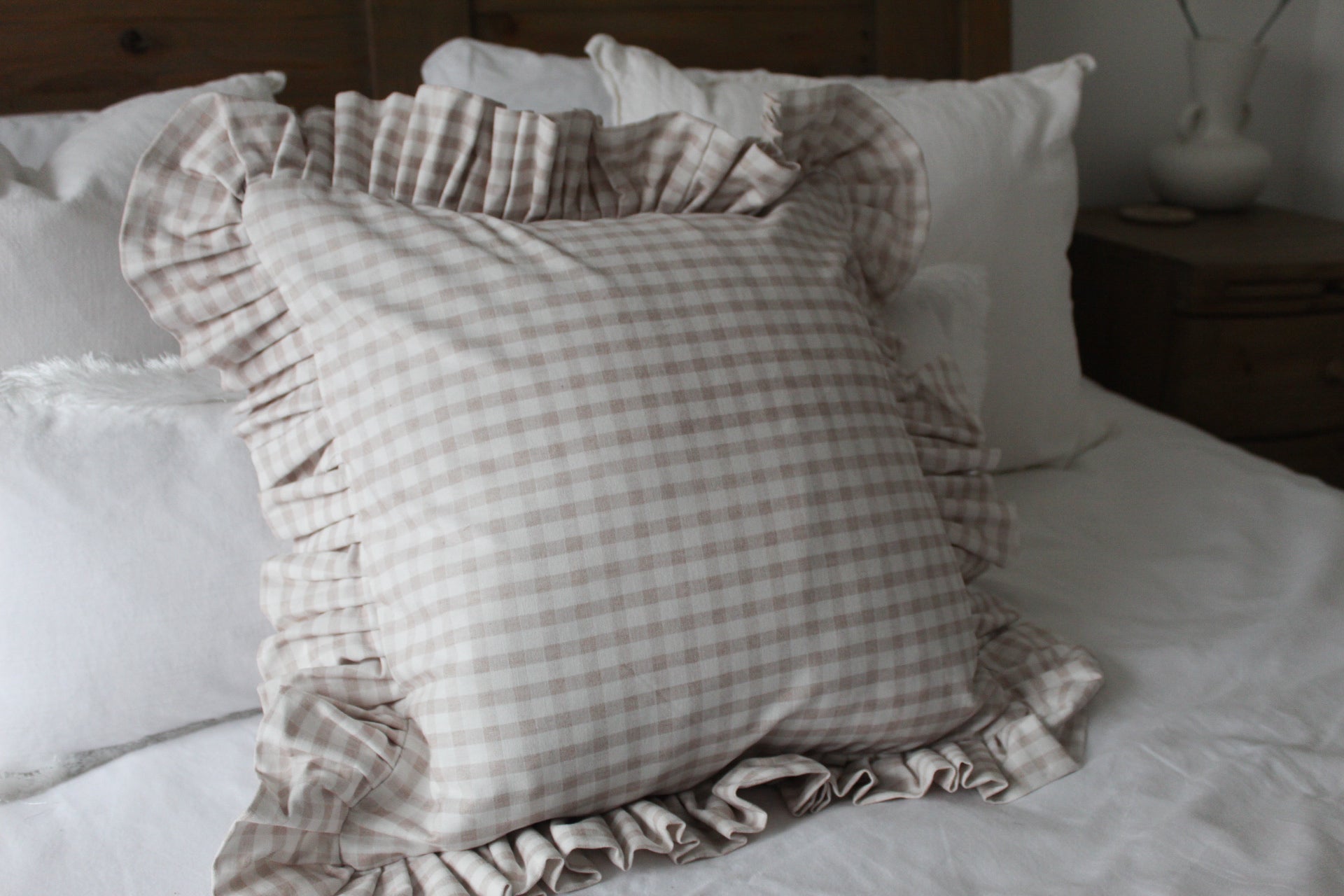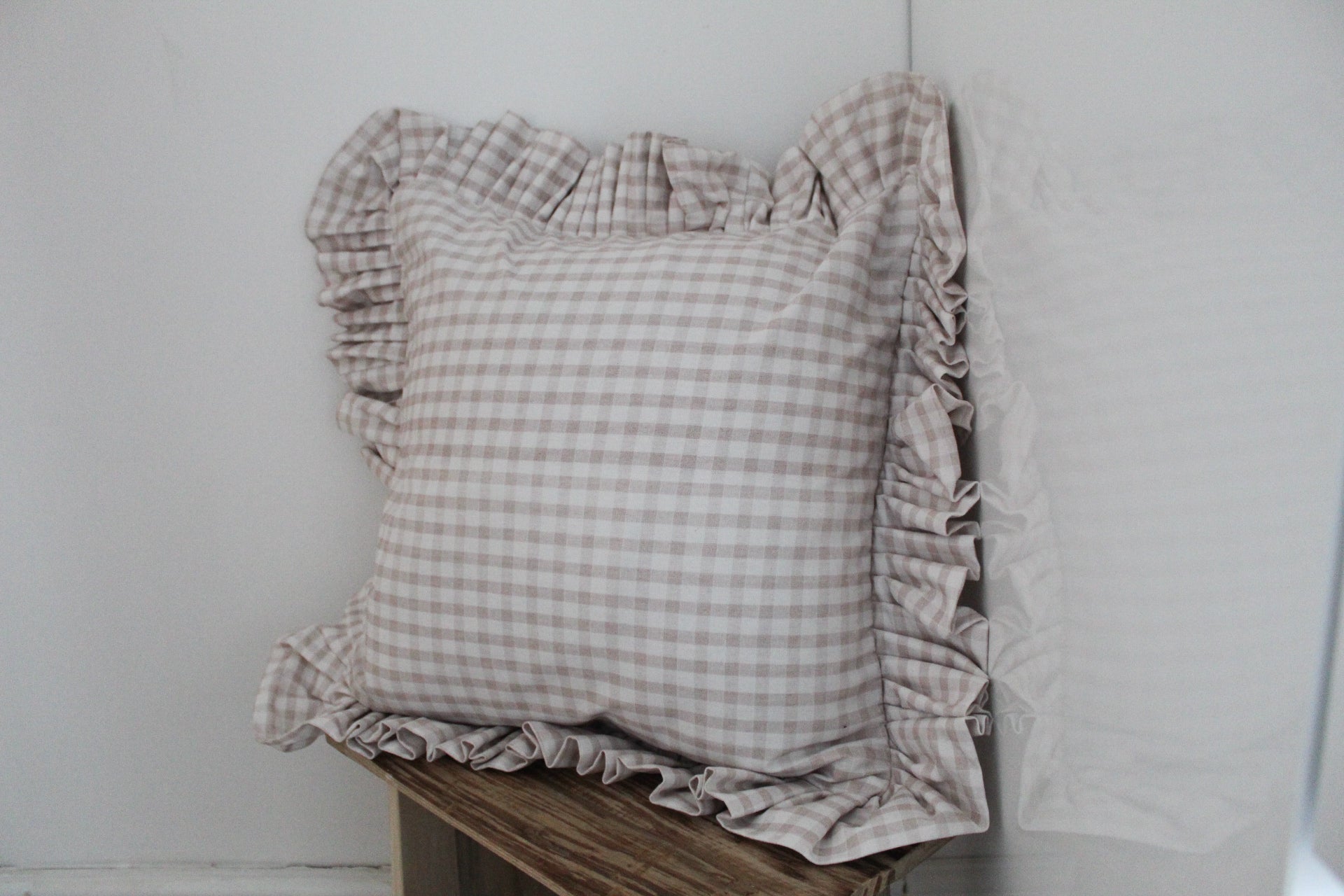 Beige check ruffle Cotton Cushion 45 x 45cm