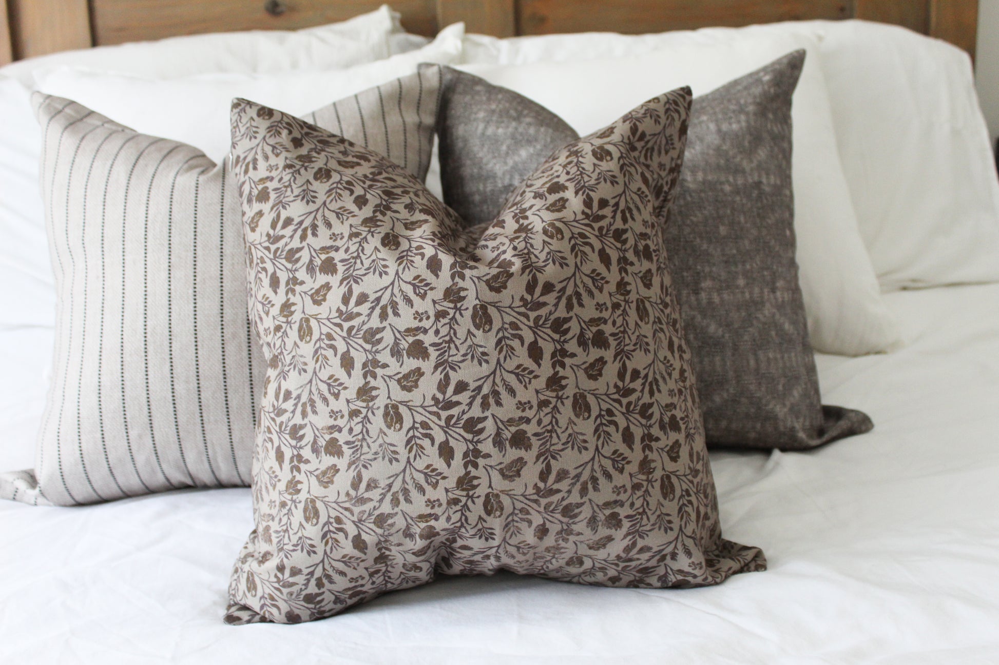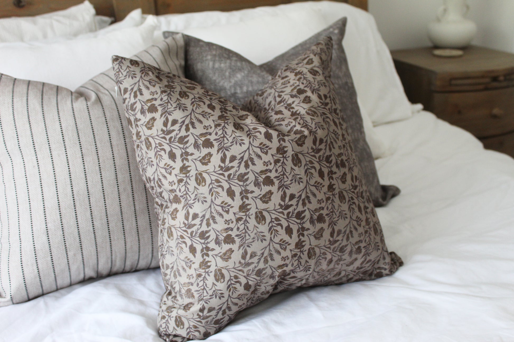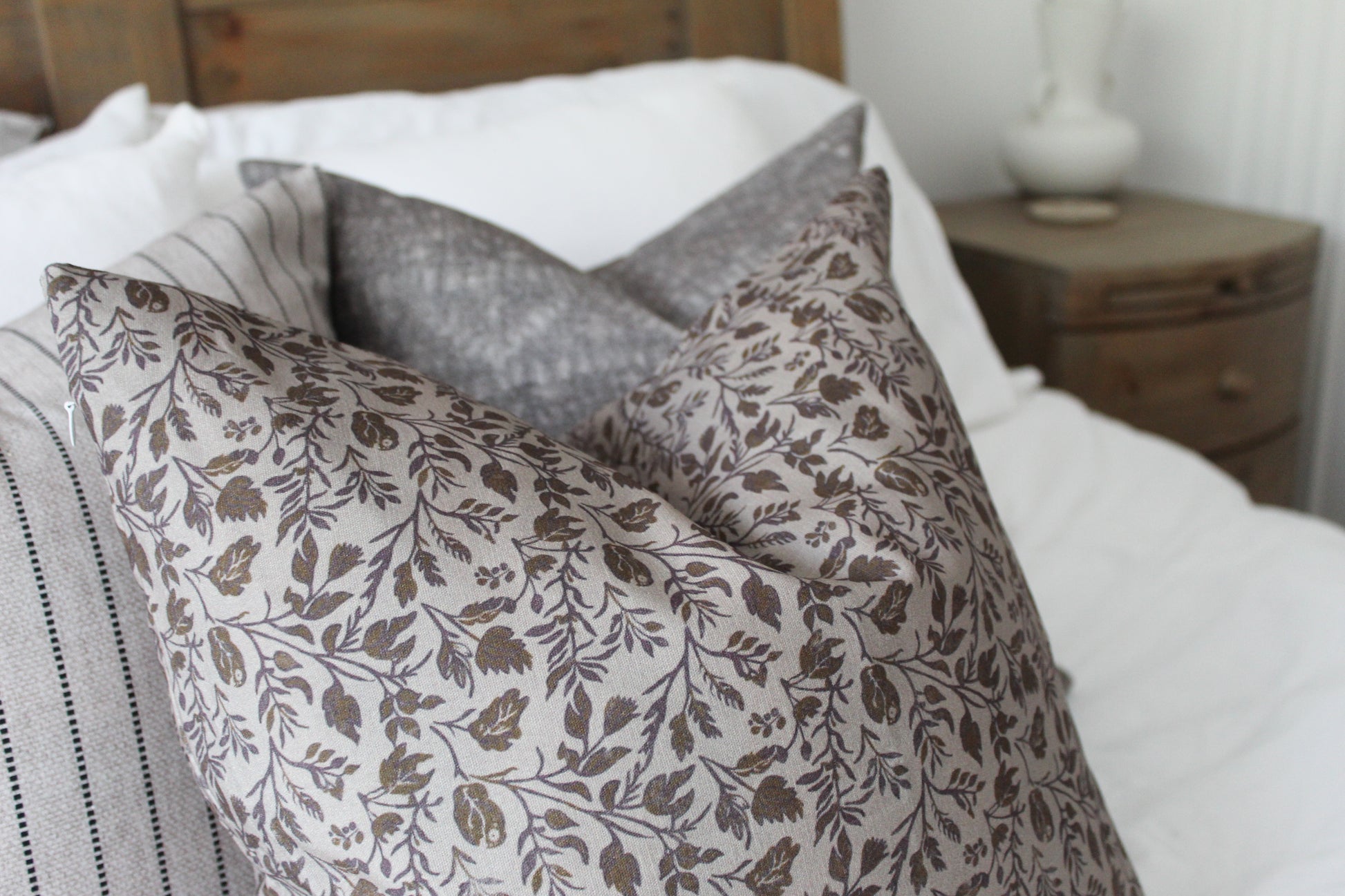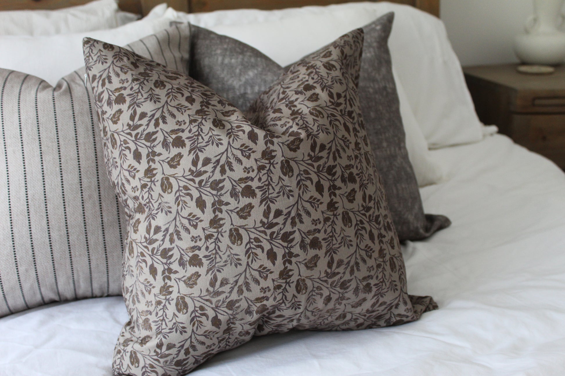 This beautiful farmhouse minimalistic neutral floral print cushion is perfect if you’re looking to add to your farmhouse and relaxing country interior.
