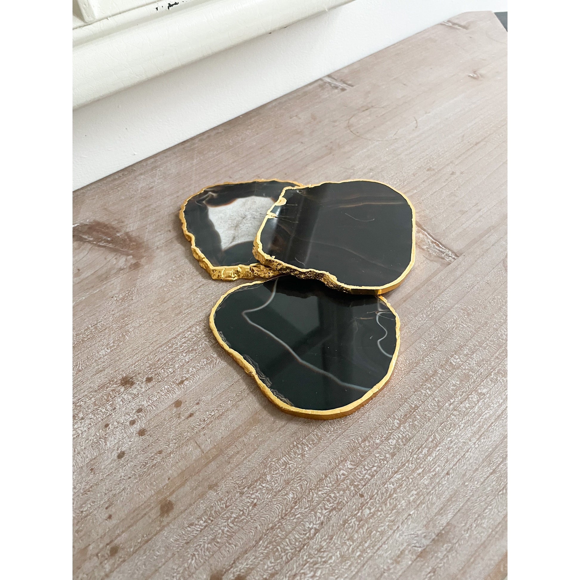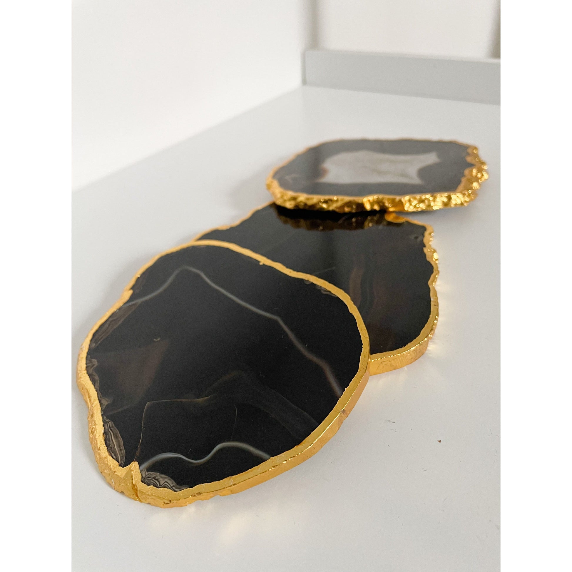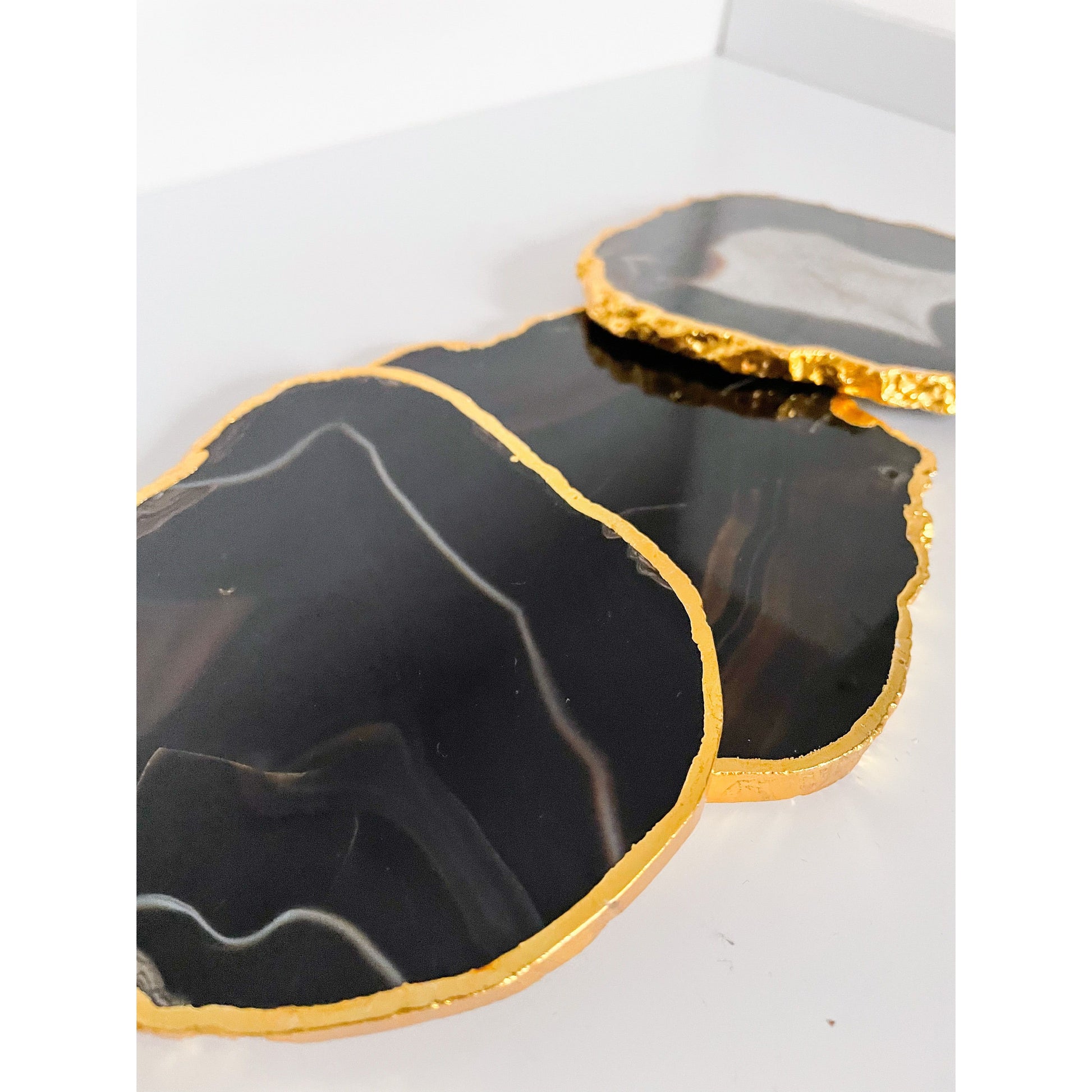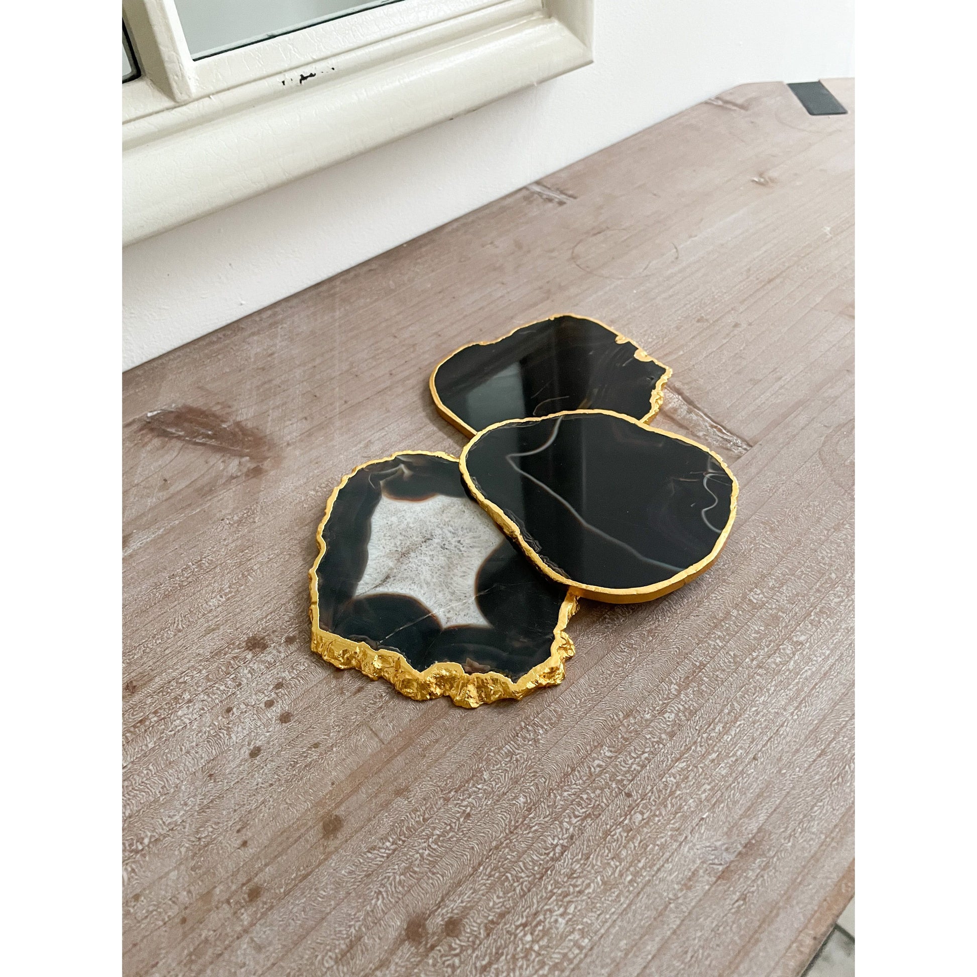 Our beautiful Black/blue and gold coasters can be purchased individually or in a set 2,3 or 4 which are a beautiful addition to elevate any room. One agate coaster is perfect for a new job gift or leaving gift as it's a beautiful addition to your desk decor. Go for a set of 2 coasters for your bedside table decor. An extra special housewarming gift or hostess gift. Four coasters can be used in the kitchen, dining room, living room, bedroom and office. Or use to display candles on around the home.