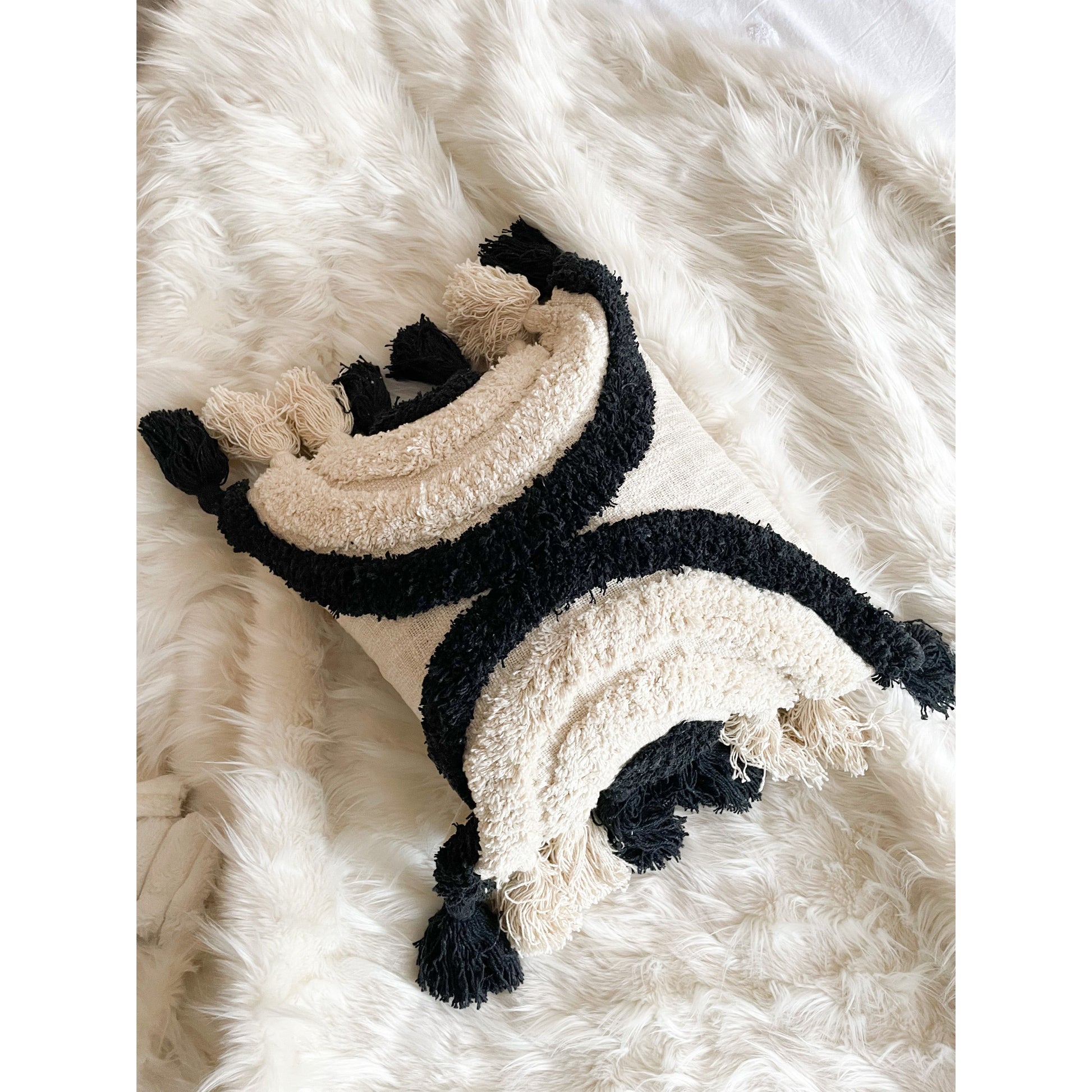Black Tufted tassel cotton throw Cushion 45x45cmm