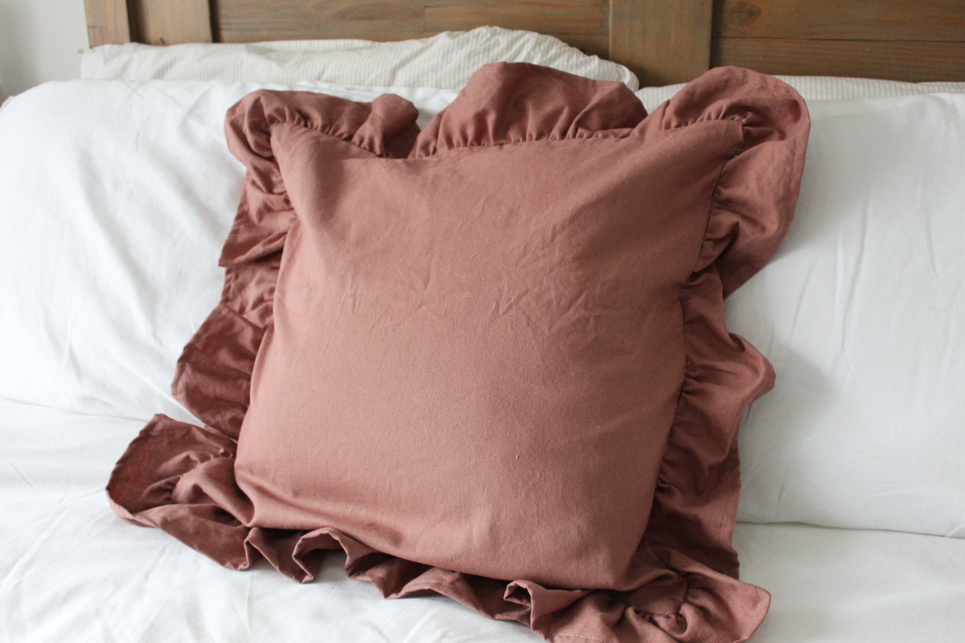 Add a touch of elegance to your home decor with this beautiful blush frilly linen cushion cover. Measuring 45 x 45cm, this cushion cover is the perfect way to update your living room or bedroom with a chic and stylish look. Made from high-quality linen, it is not only stylish but also durable and easy to care for. Elevate your space with this sophisticated cushion cover that effortlessly blends classic floral design with a contemporary color palette.