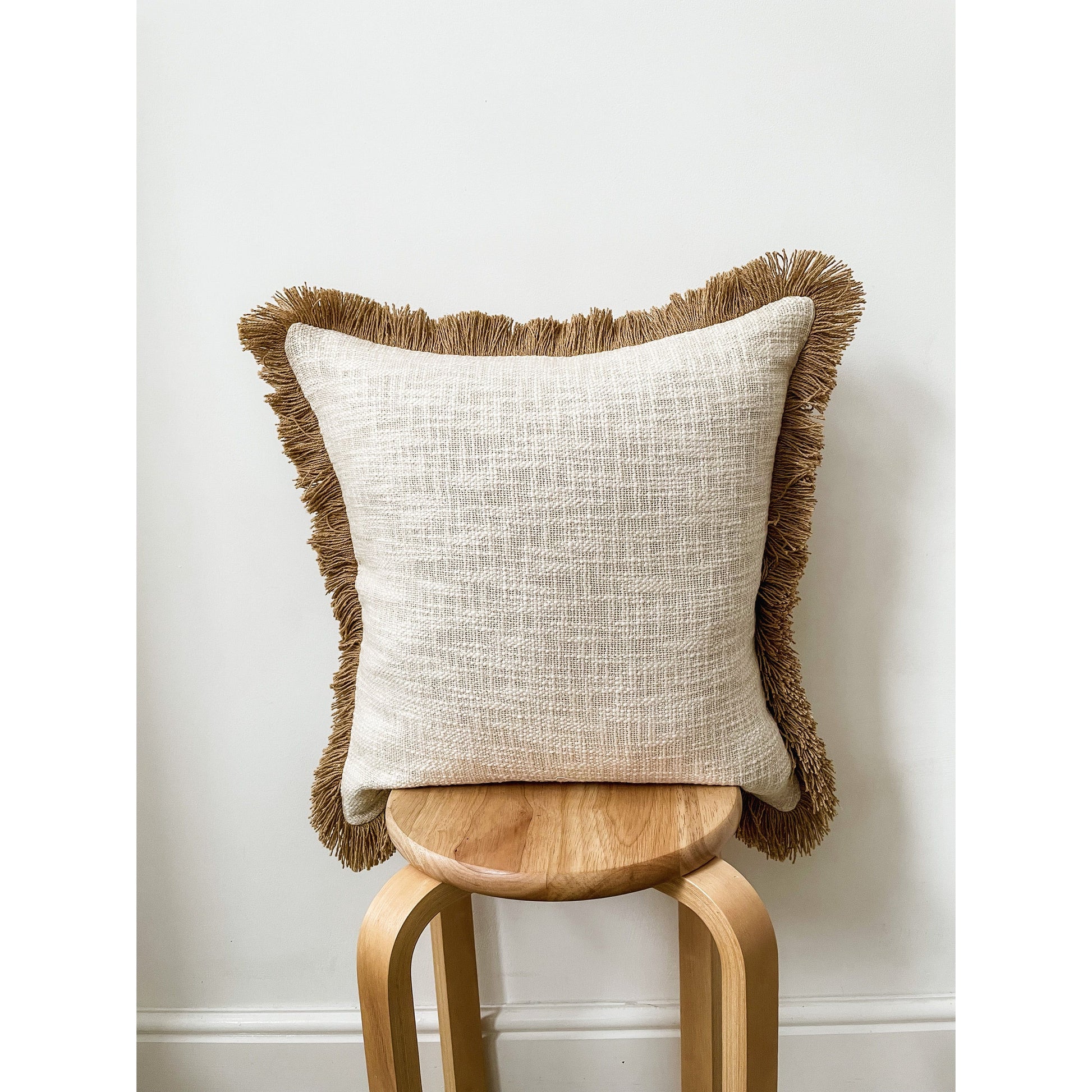 Tan Fringe Beige cotton Cushion 45 x 45cm