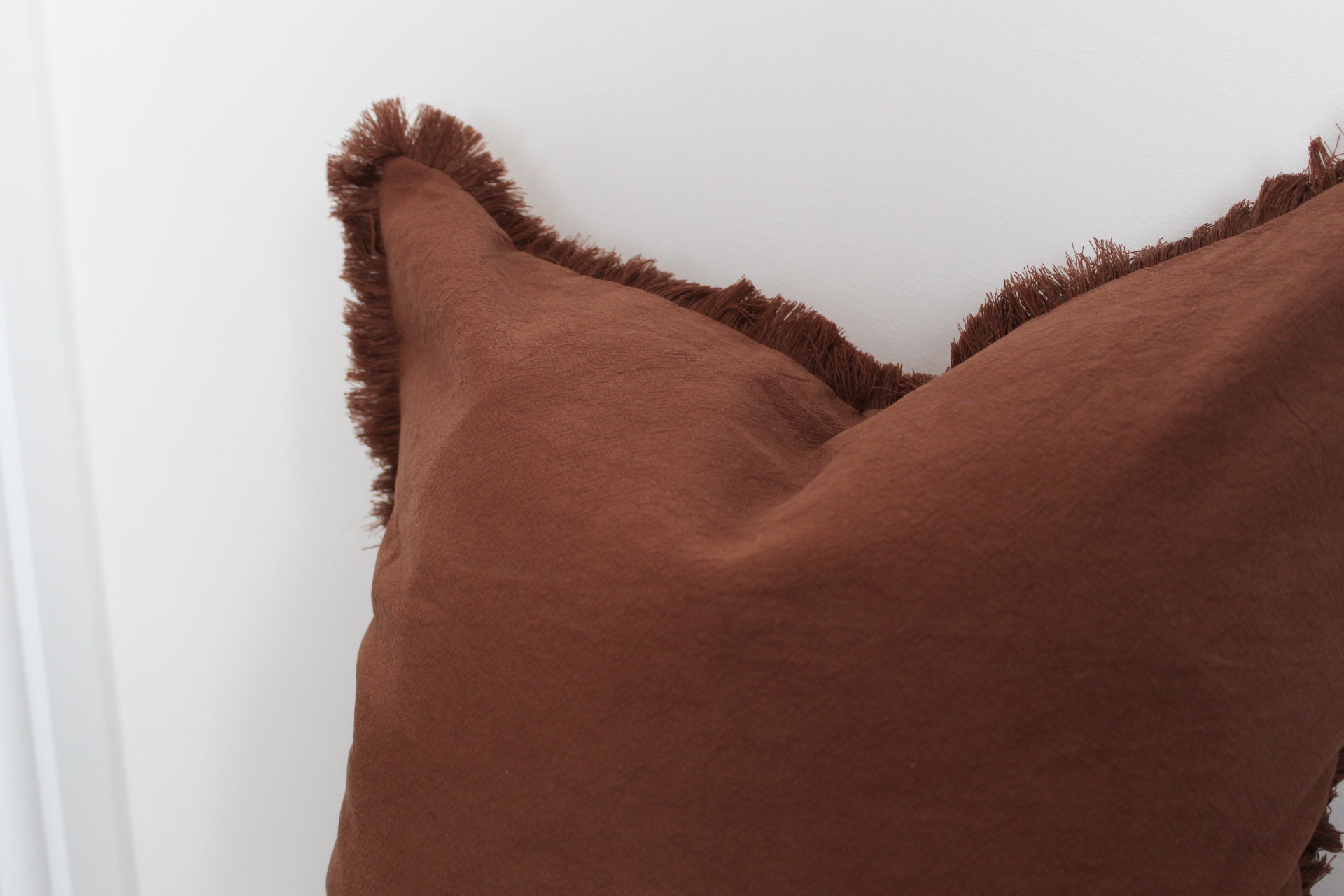 Brown fringe cotton cushion 45x45cm