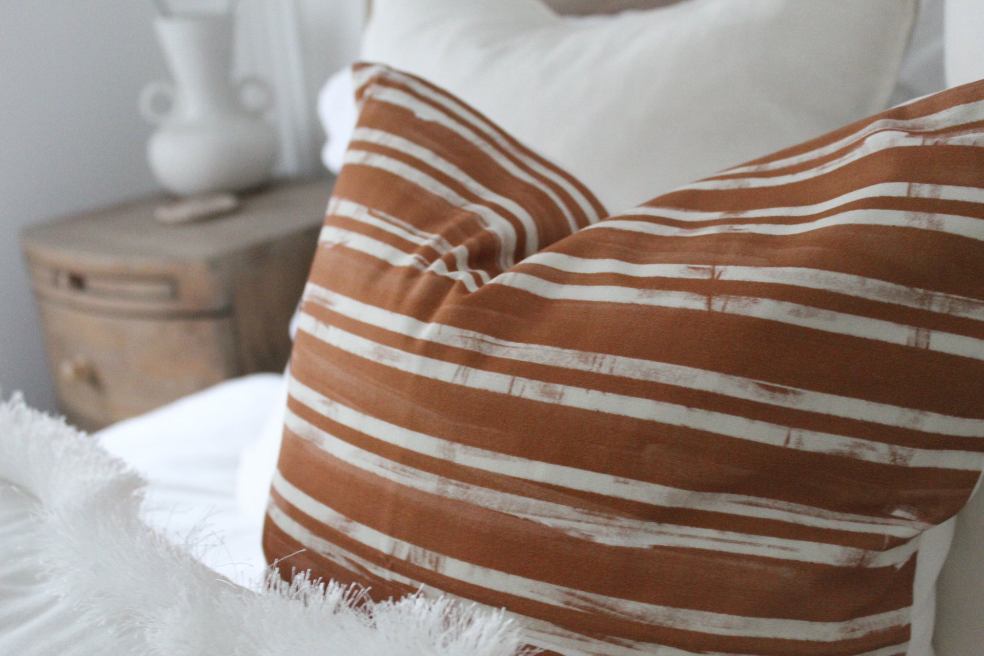 Elevate the elegance of your home decor with this stunning orange stripe Cushion Cover in the size 45 x Featuring a delicate stripy pattern in a soft, muted orange tone, this cushion cover will add a touch of romantic charm to any room. Made with high-quality fabric, this cover is not only beautiful but also durable. Perfect for adding a feminine touch to your living room, bedroom, or any cozy nook in your home. Upgrade your space with this lovely orange tickling Cushion Cover today!