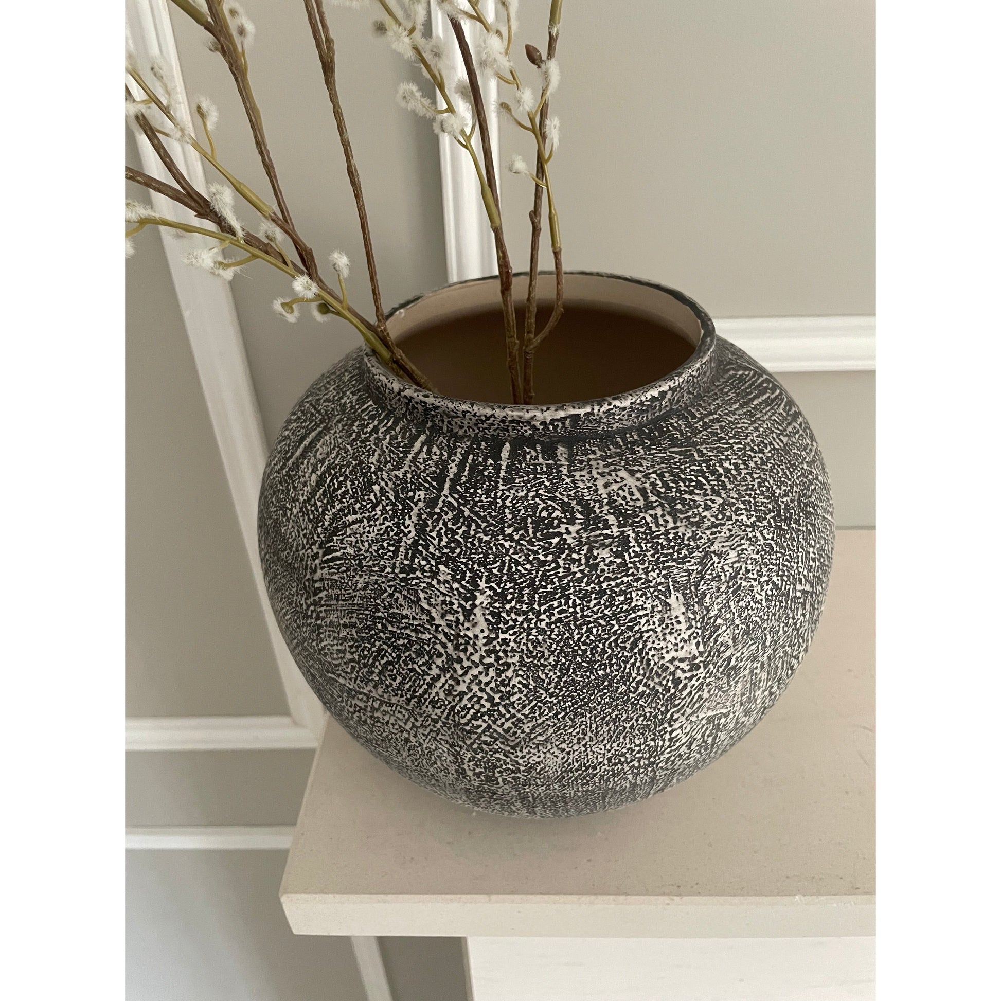 This eye catching rustic distressed style ceramic vase in colour stone is a perfect addition to your relaxing country style interior. Perfect for any window ledge, dining table, side table, coffee table, console table ect.