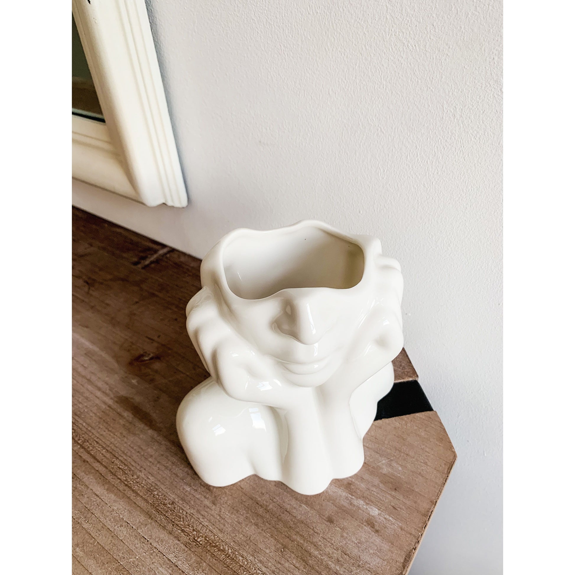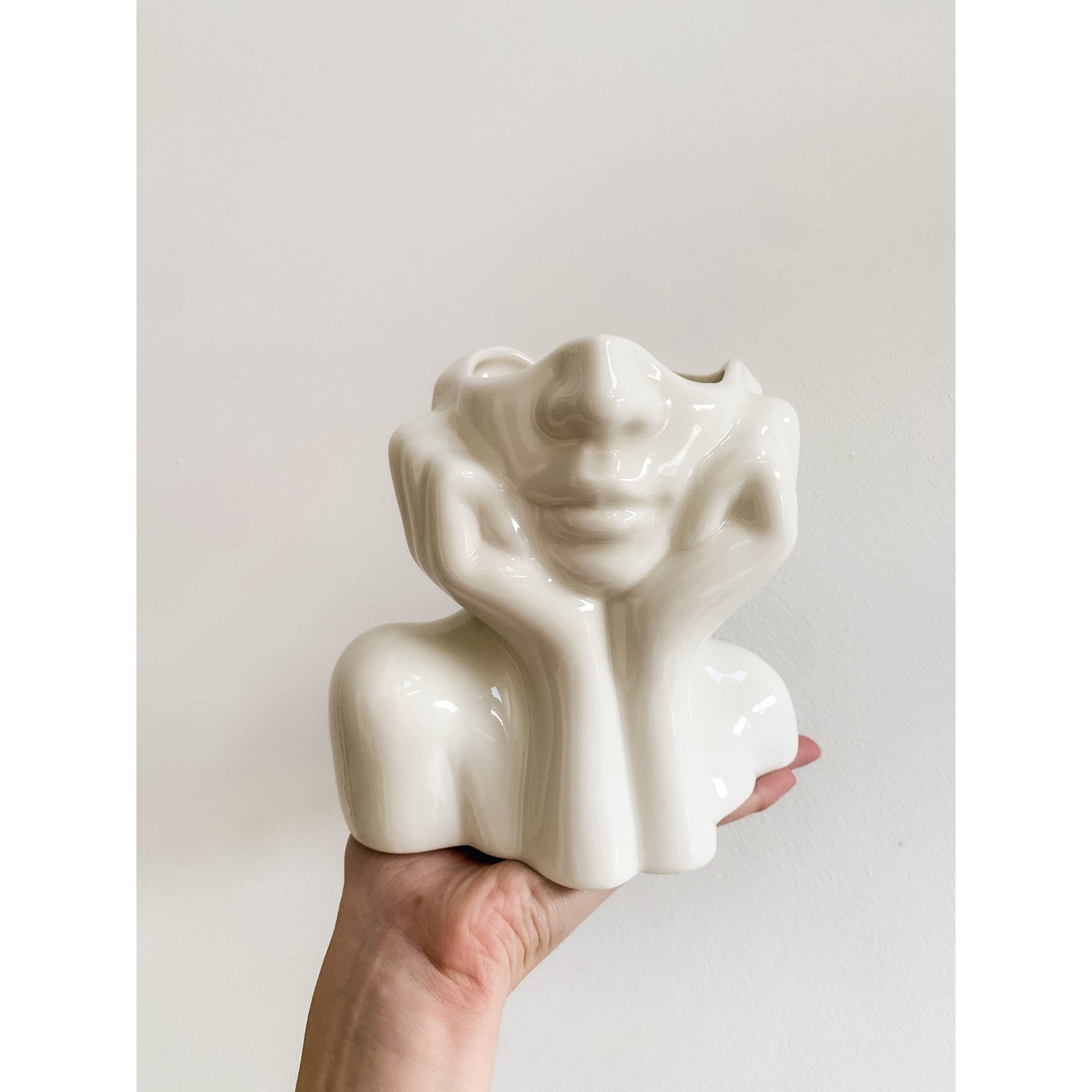 Face Sculpture Vase in White for Flowers
