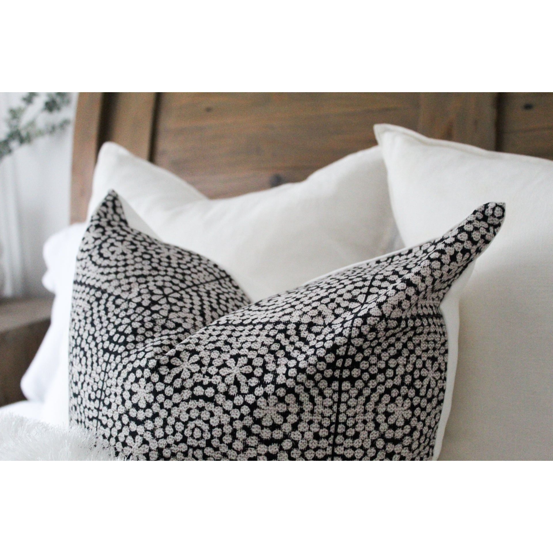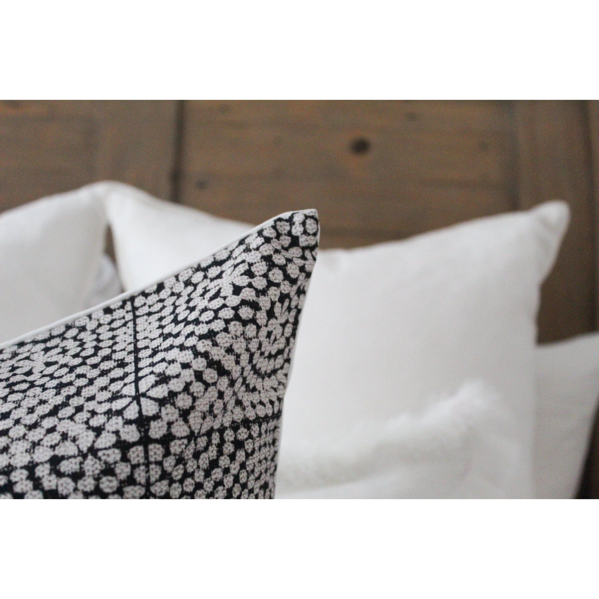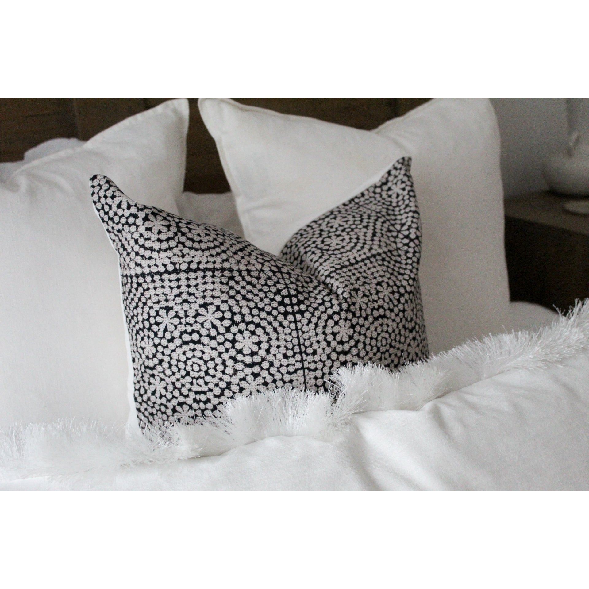 The beauty of these sophisticated cushions is enchanting and eye catching. The design and pattern is fresh and relevant and would also go nicely with our other white or black cushions on our shop.