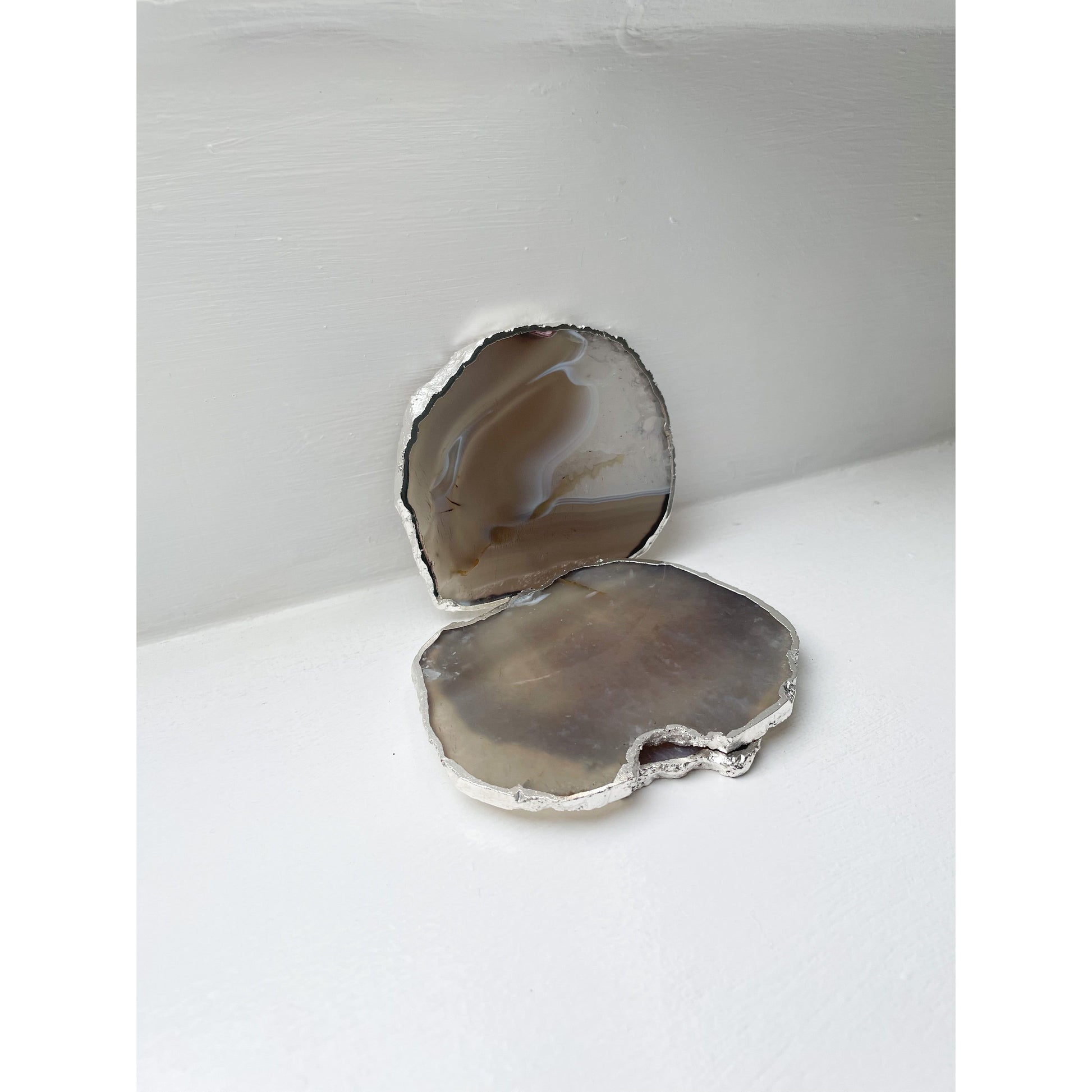 Our beautiful grey and silver coasters can be purchased individually or in a set 2,3 or 4 which are a beautiful addition to elevate any room. One agate coaster is perfect for a new job gift or leaving gift as it's a beautiful addition to your desk decor. Go for a set of 2 coasters for your bedside table decor. An extra special housewarming gift or hostess gift. Four coasters can be used in the kitchen, dining room, living room, bedroom and office. Or use to display candles on around the home.