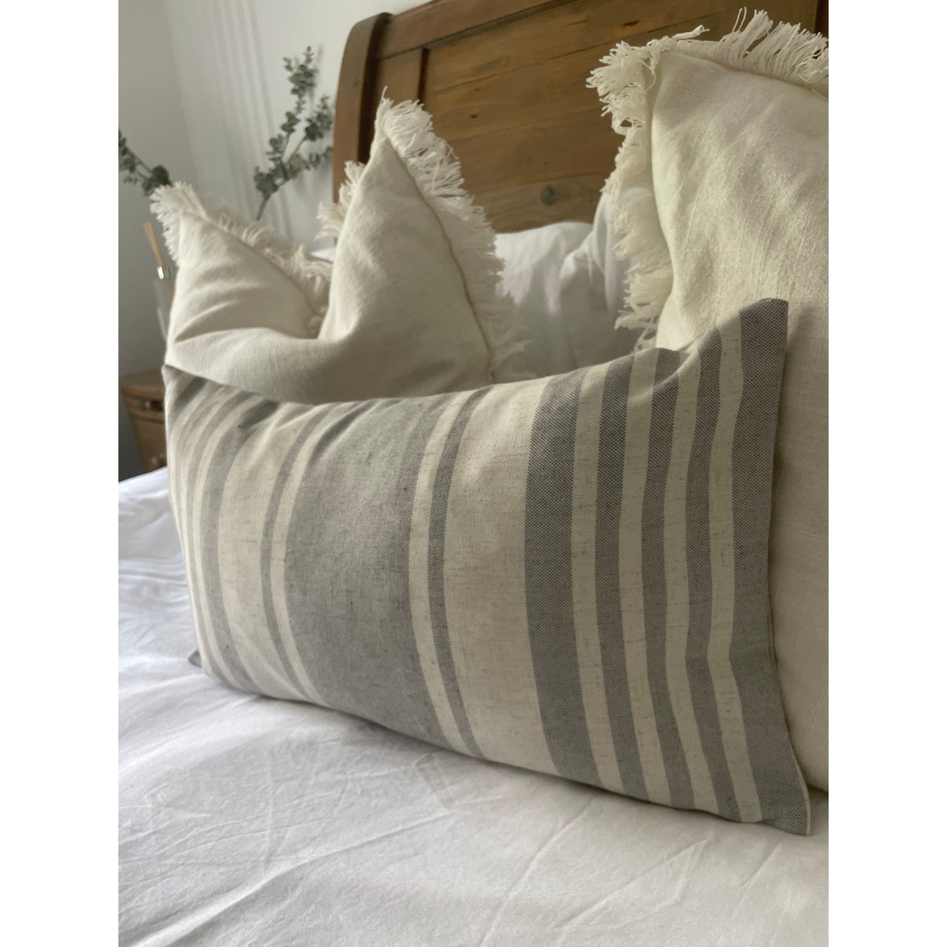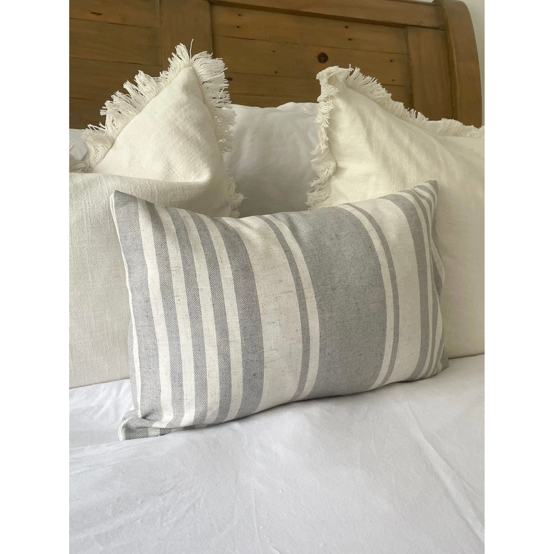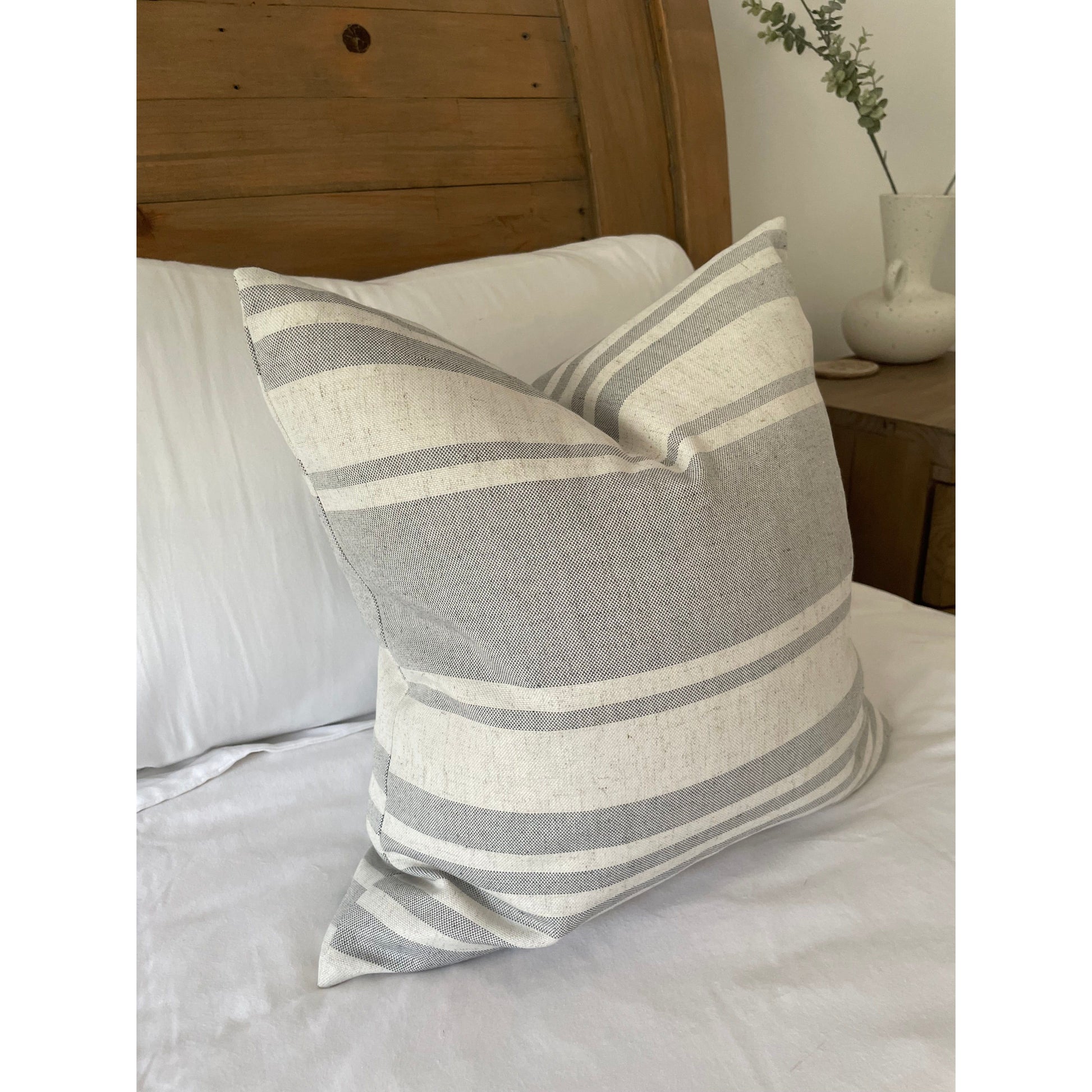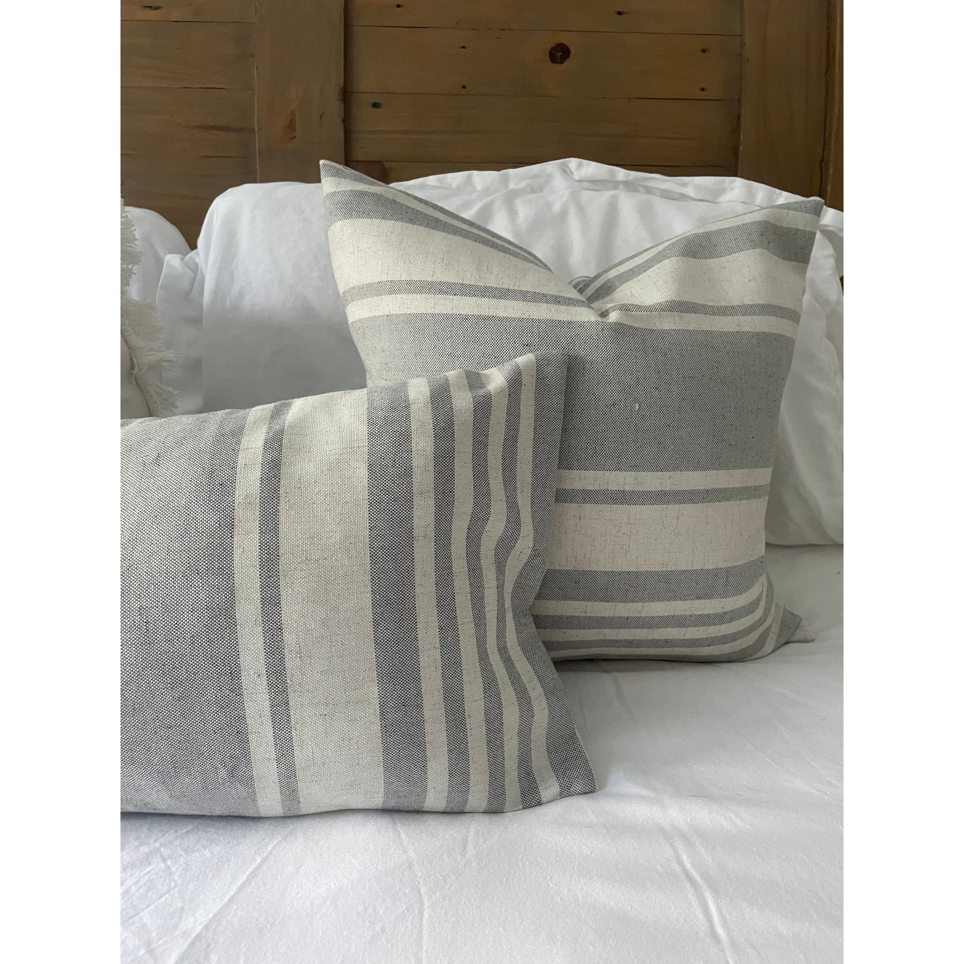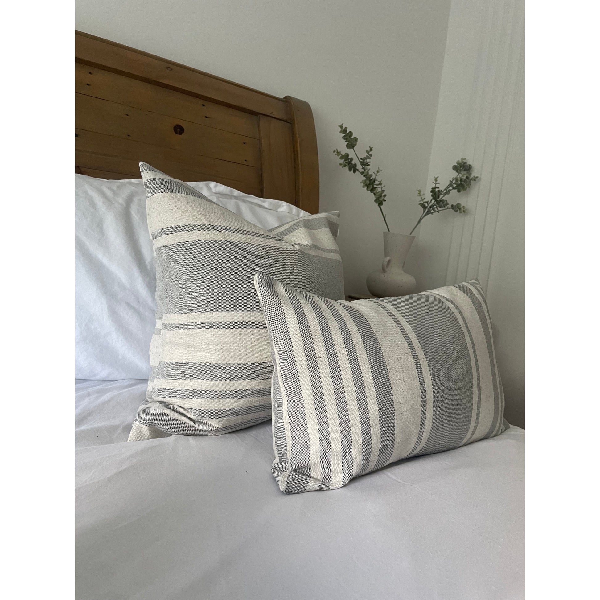 Grey and white linen stripe cushion cover, Minimalistic country style pillow cover, Neutral striped throw cotton cushion cover 2 sizes