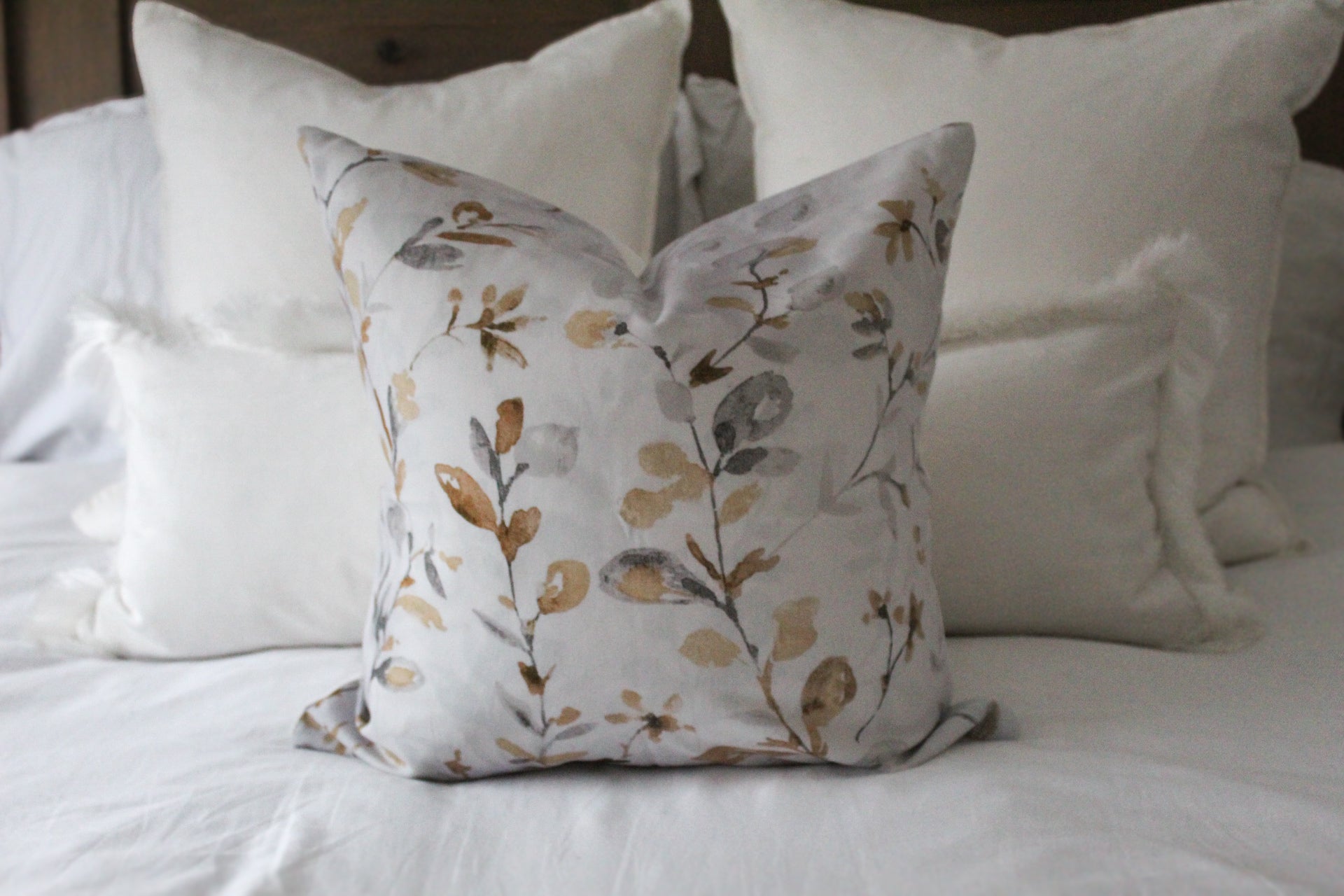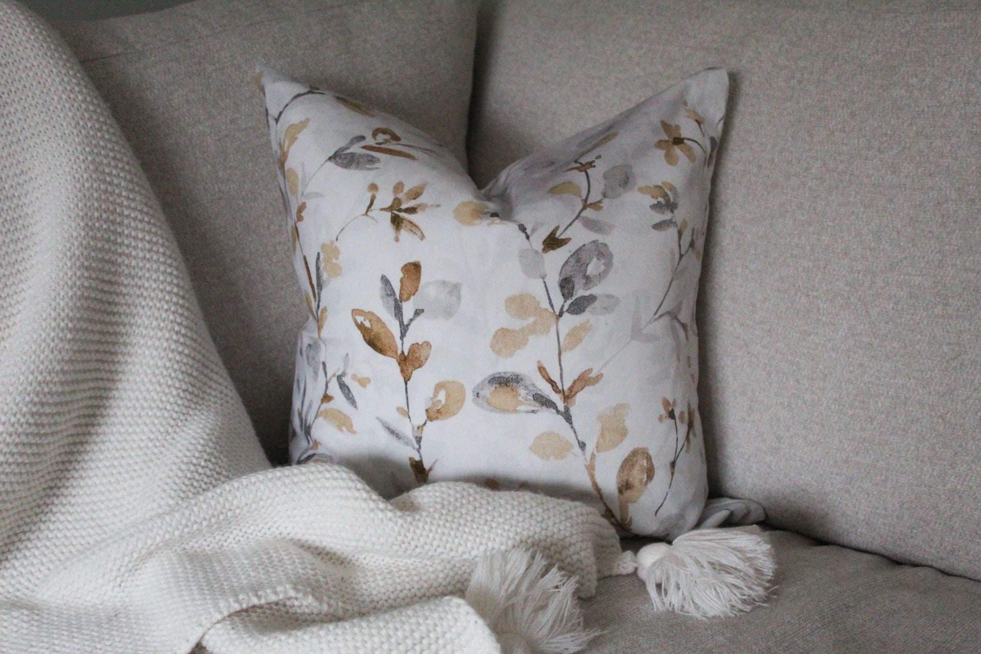 Light grey floral print cotton cushion 45 x 45cm