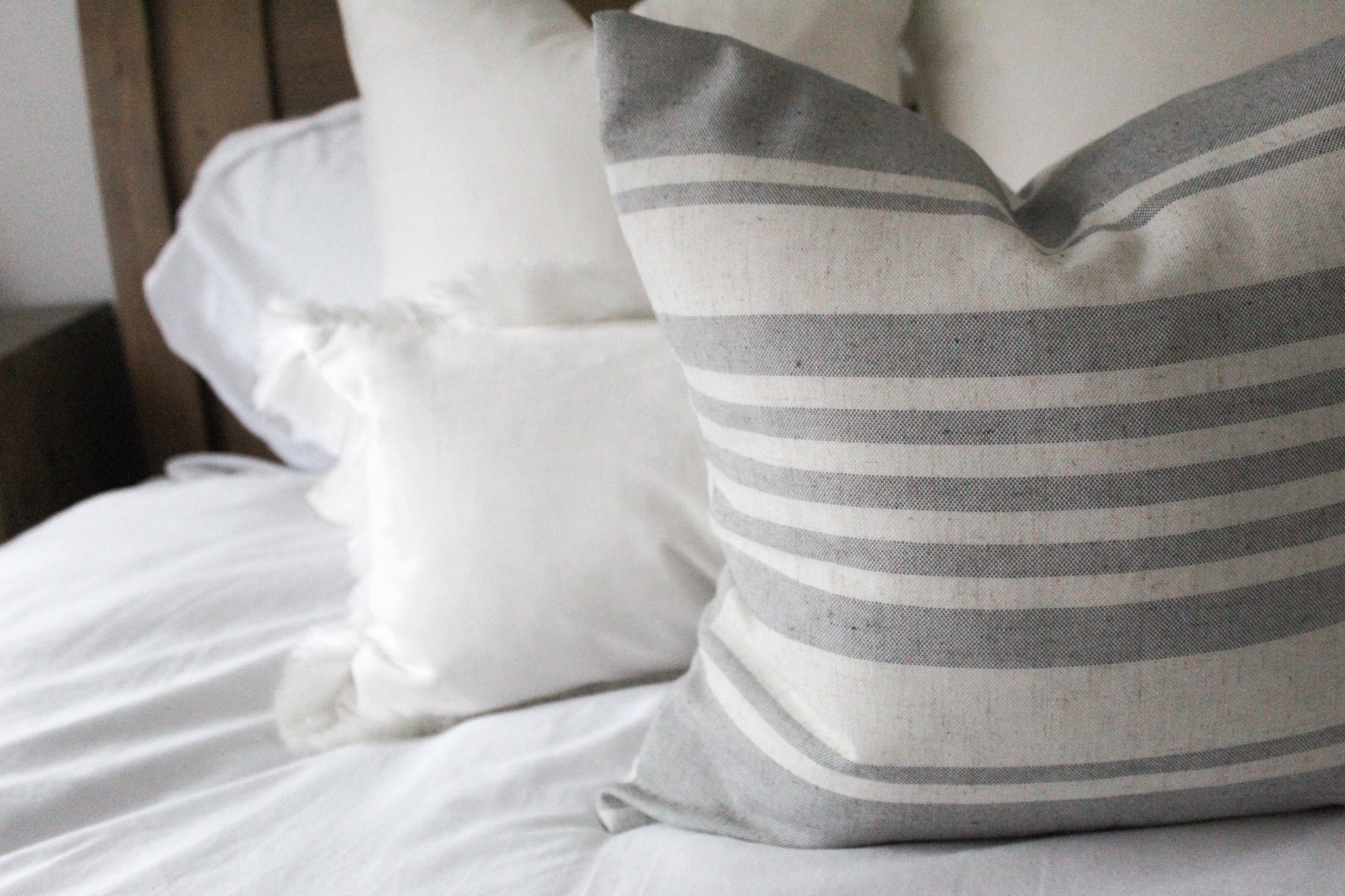 Introduce a touch of elegance and comfort to your living space with this charming Grey and White Ticking Lumbar Cotton Cushion Cover. Made from high-quality cotton fabric, this cushion cover features a timeless grey and white ticking pattern that will effortlessly complement any home decor style. Whether adorning your sofa, chair, or bed, this cushion cover is sure to add a cozy and inviting atmosphere to any room. Elevate your space with this stylish and versatile accessory and enjoy the perfect blend of style and comfort.