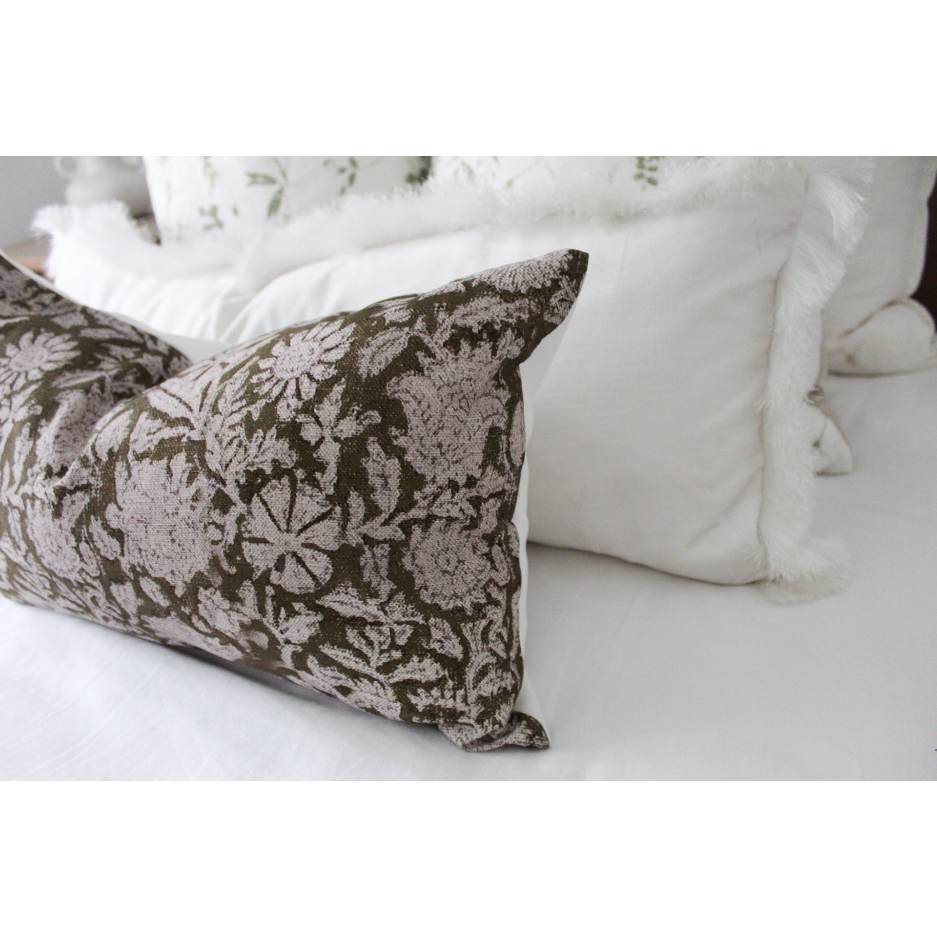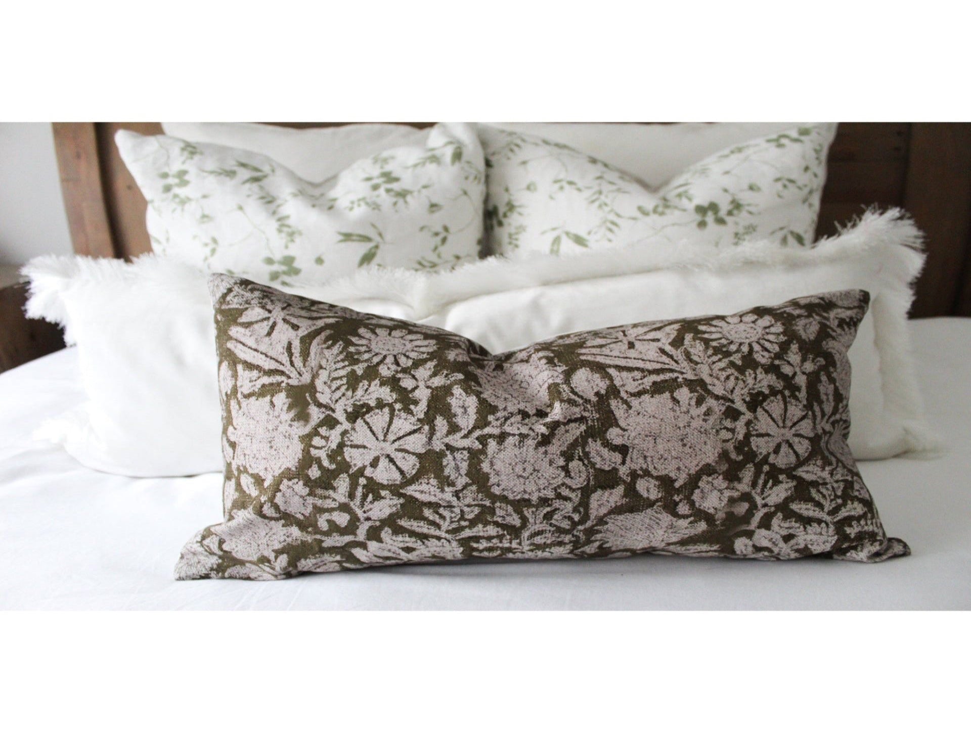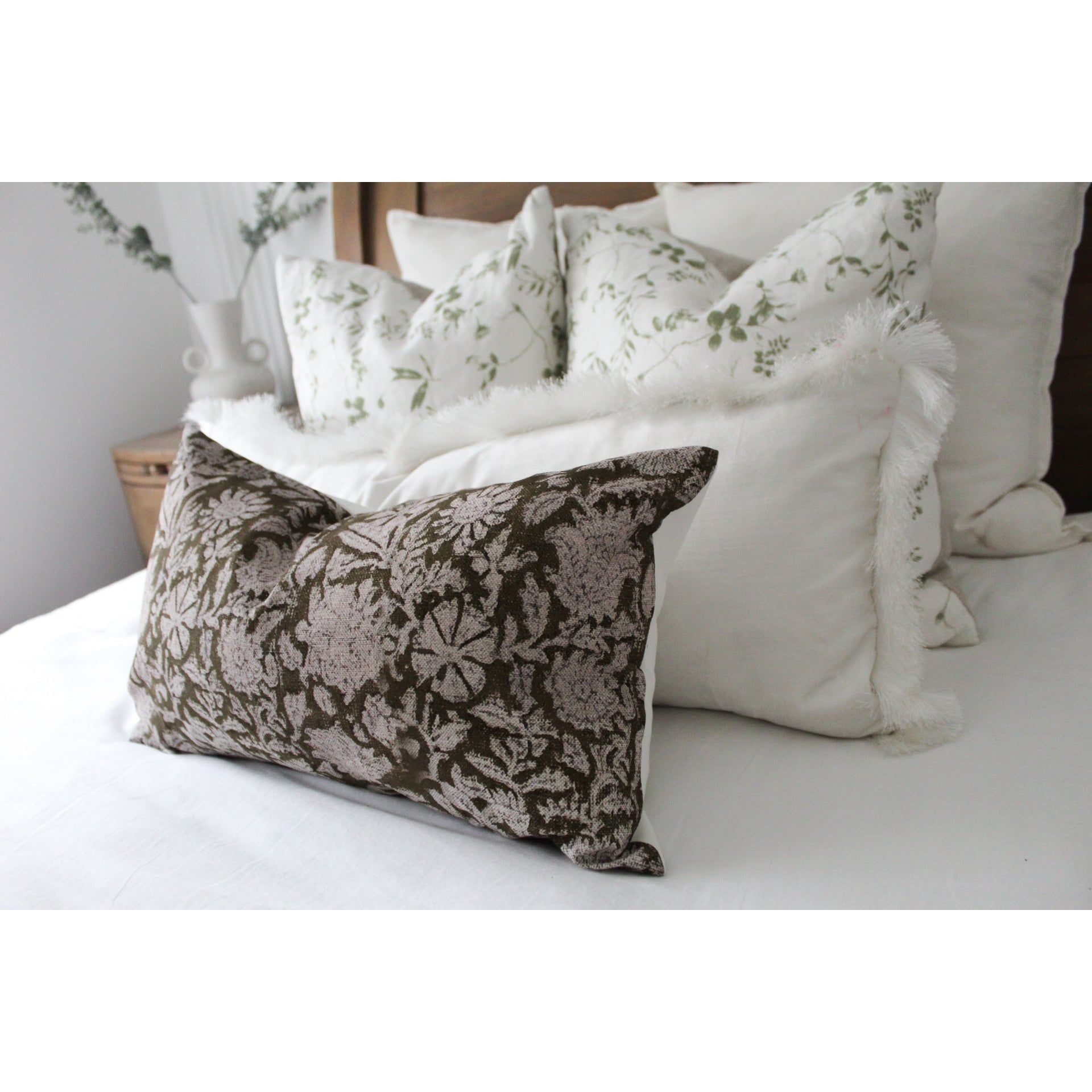 Lumbar green floral cotton cushion cover 50 x 30cm