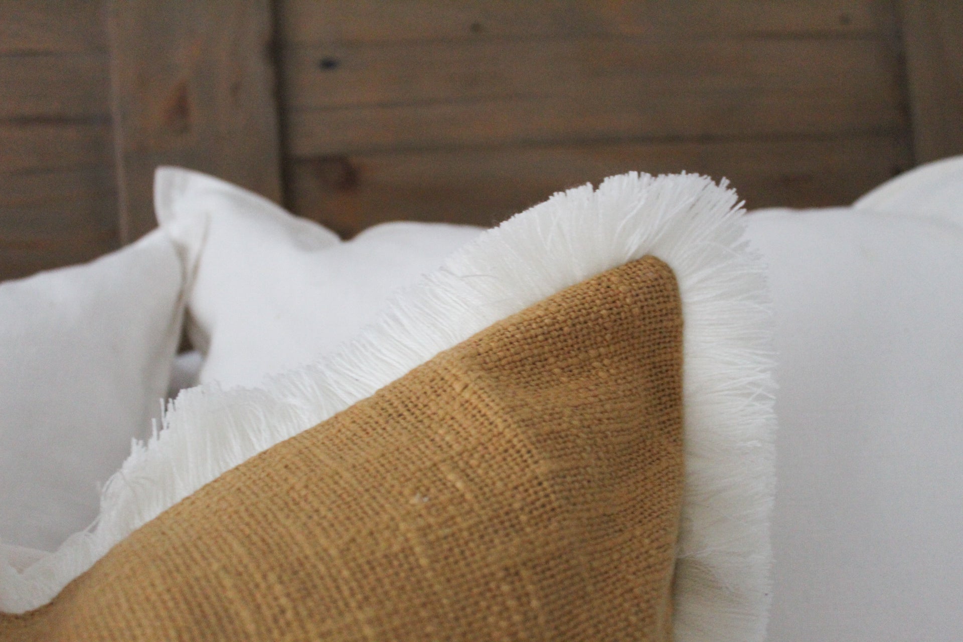 Mustard cream fringe trim cotton cushion 45 x 45cm