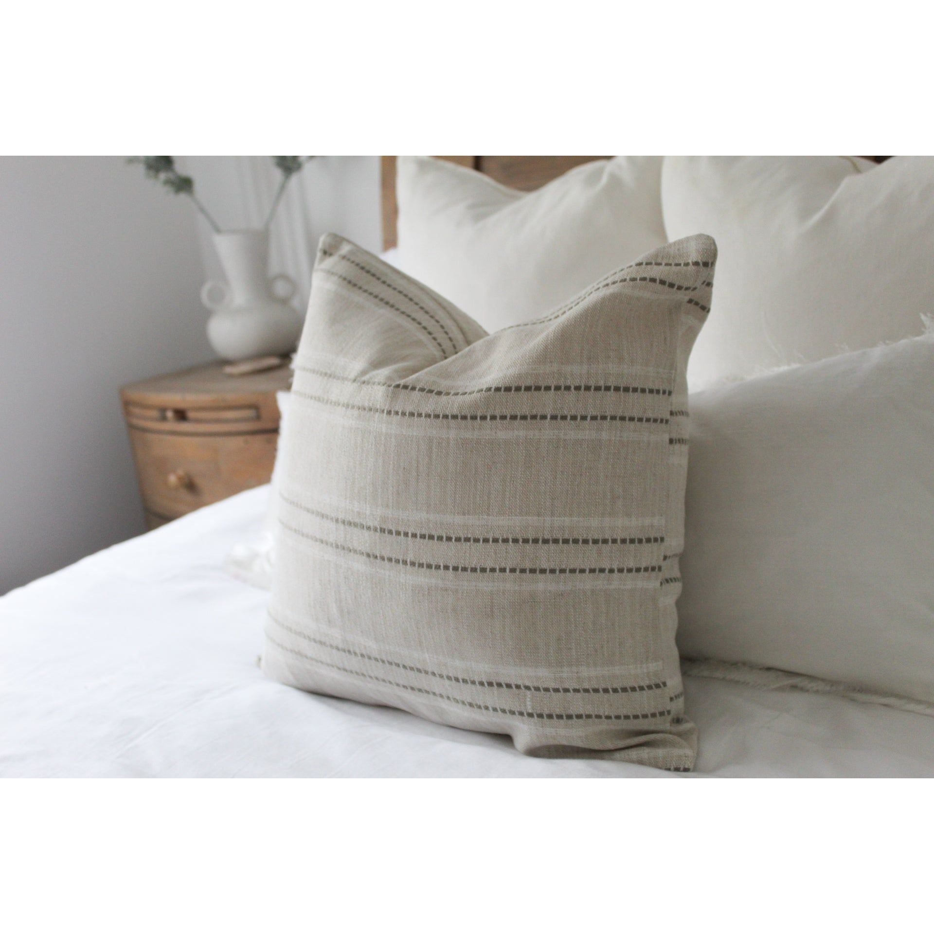 This beautiful farmhouse minimalistic neutral stripe cushion is perfect if you’re looking to add to your farmhouse and relaxing country interior.