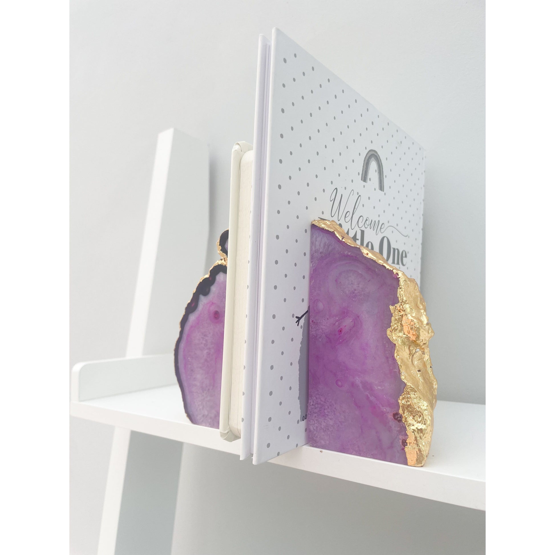 These pink agate stone book ends are a wonderful feature to you book shelves. The agate has a relatively low frequency, therefore is a very peaceful and soothing crystal
