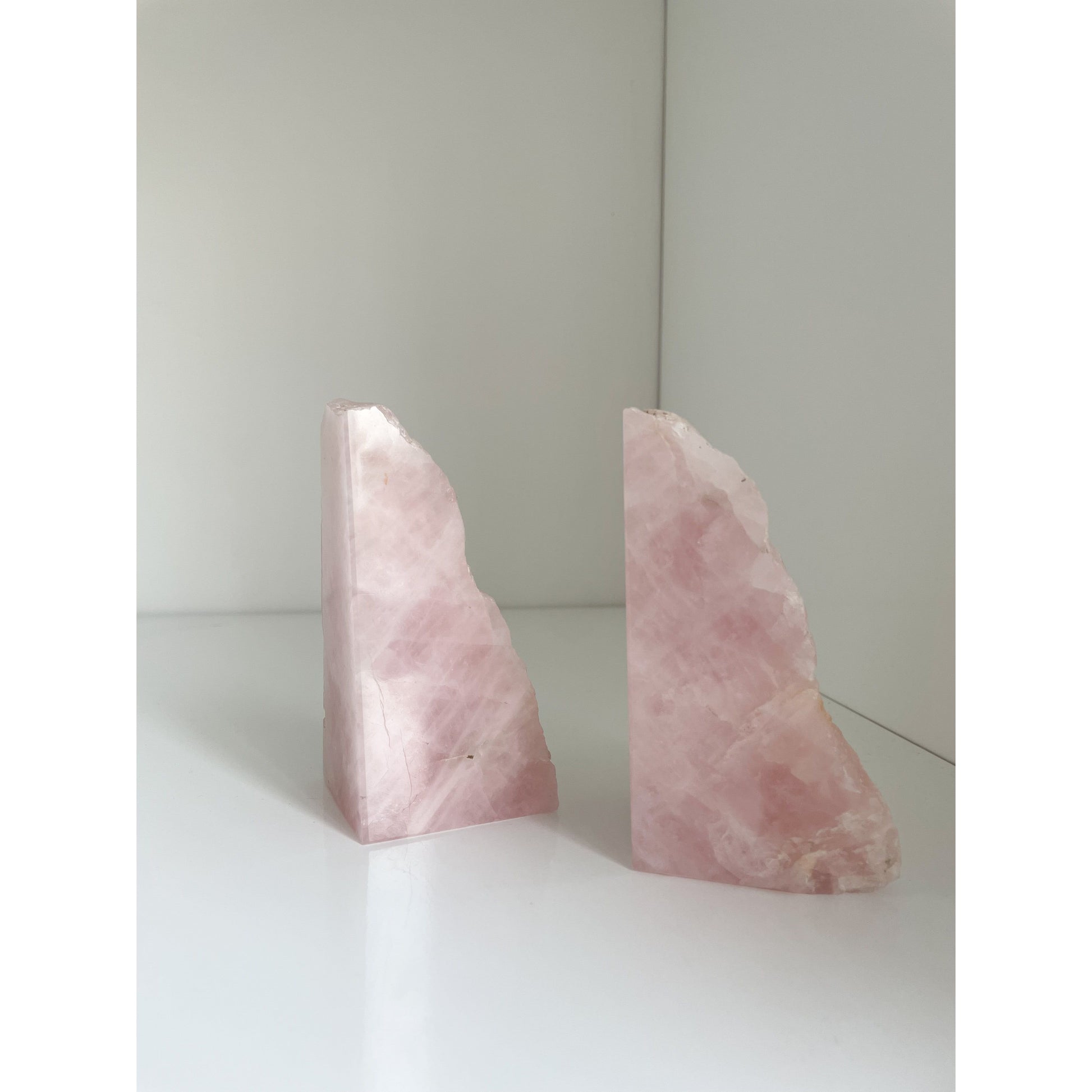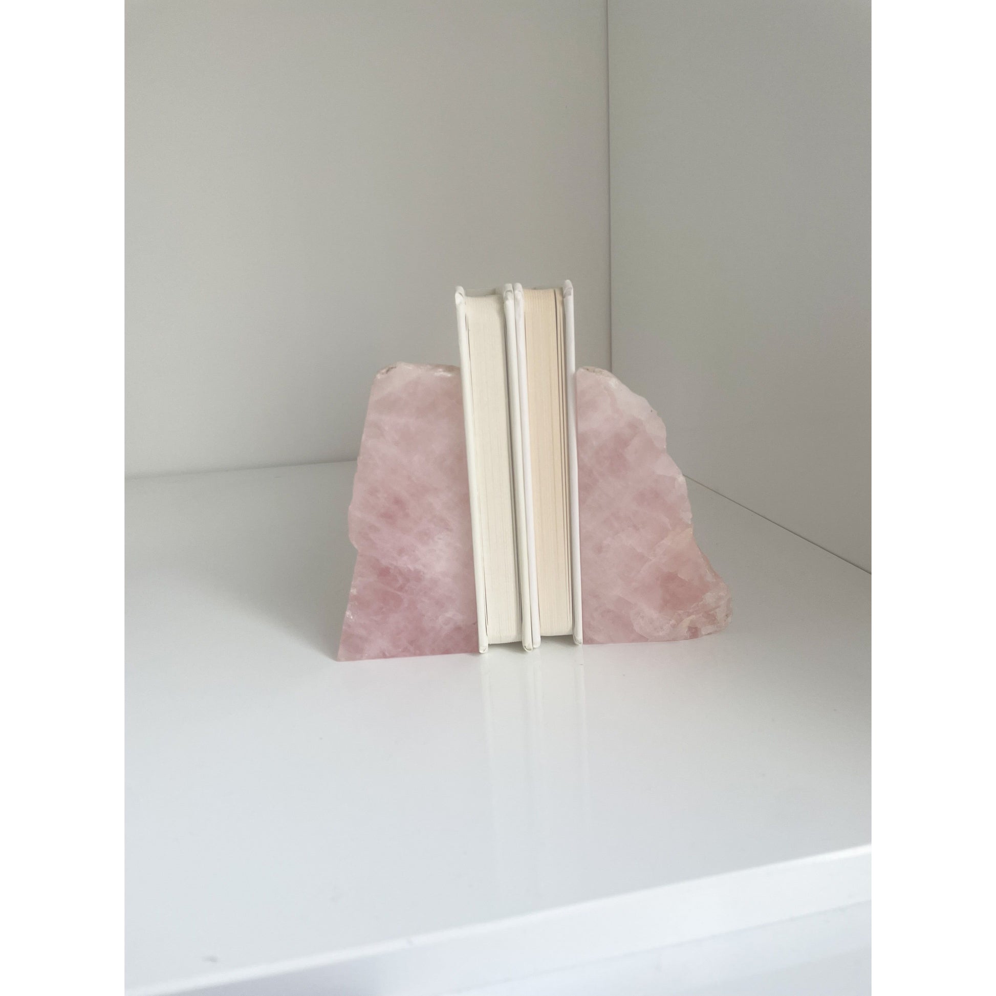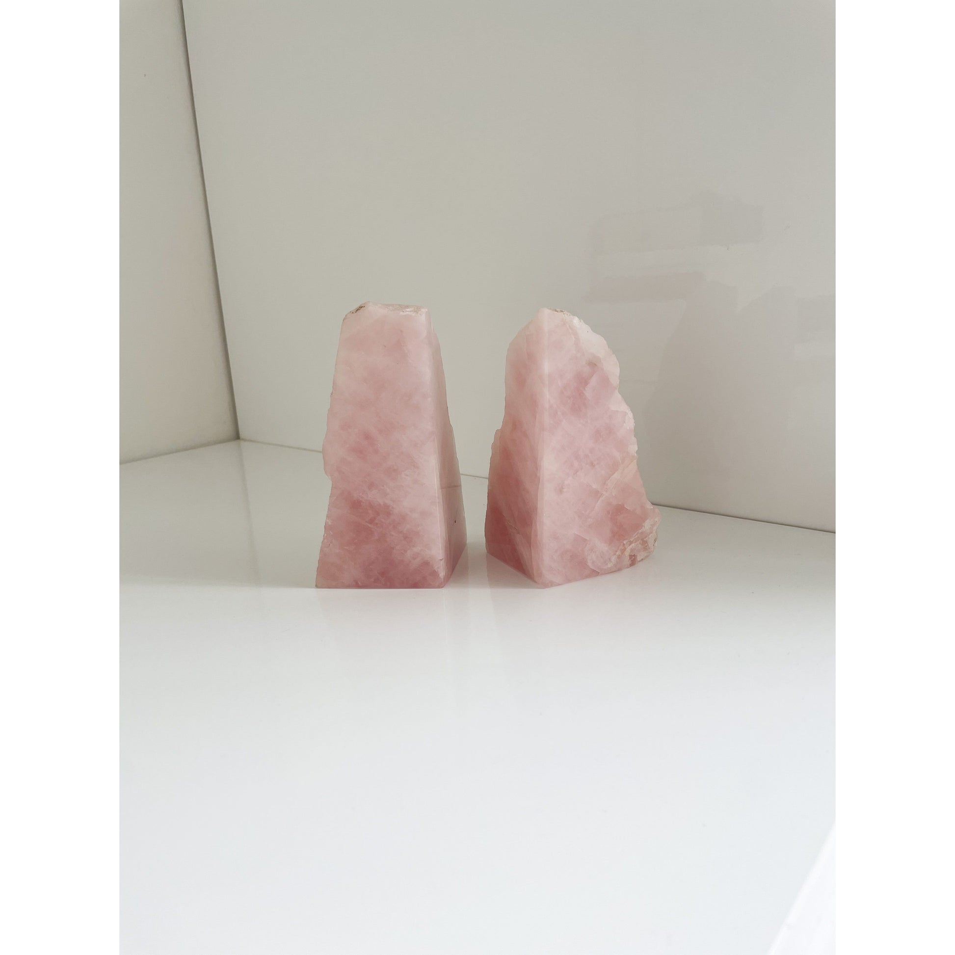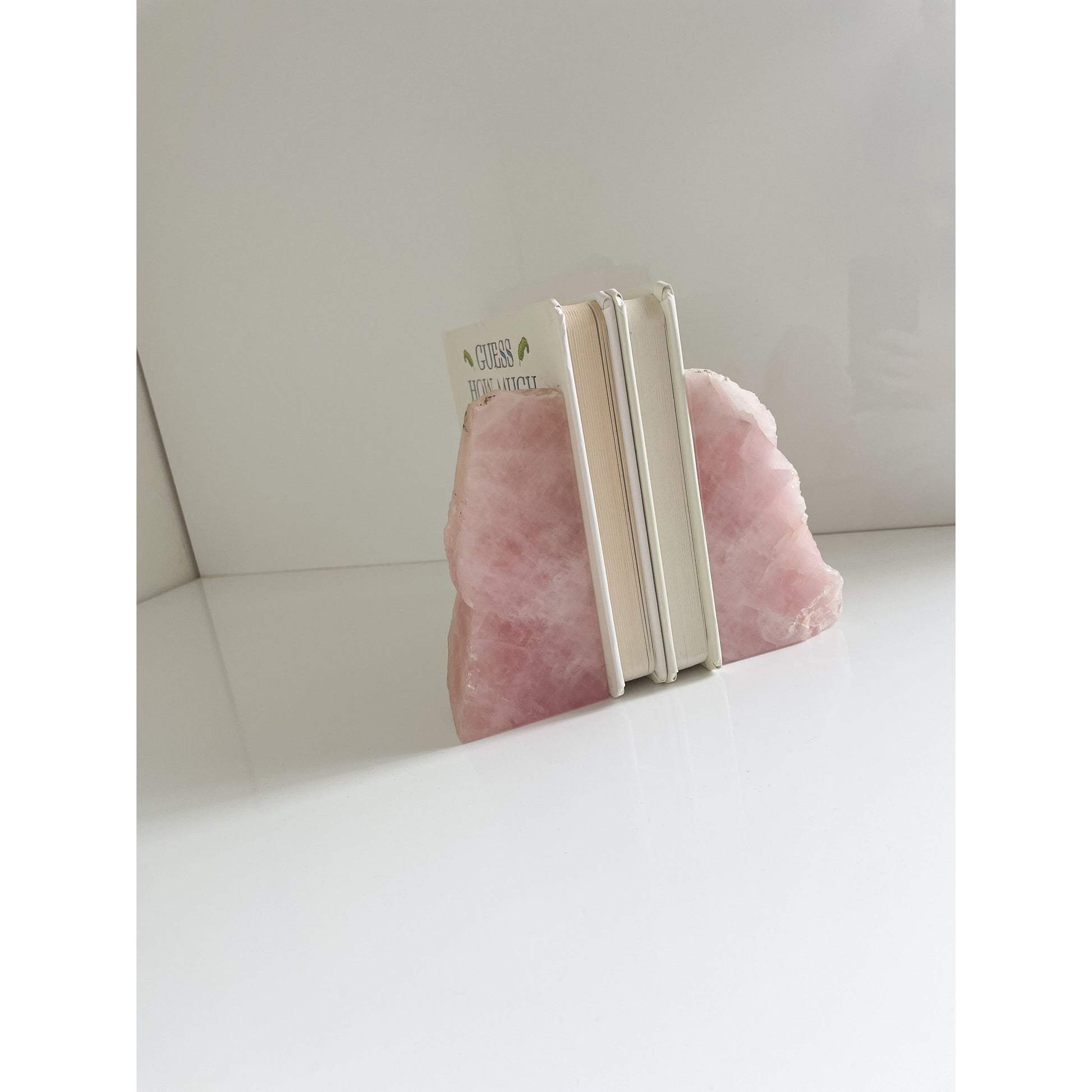 These pink quartz agate stone book ends are a wonderful feature to you book shelves. The agate has a relatively low frequency, therefore is a very peaceful and soothing crystal