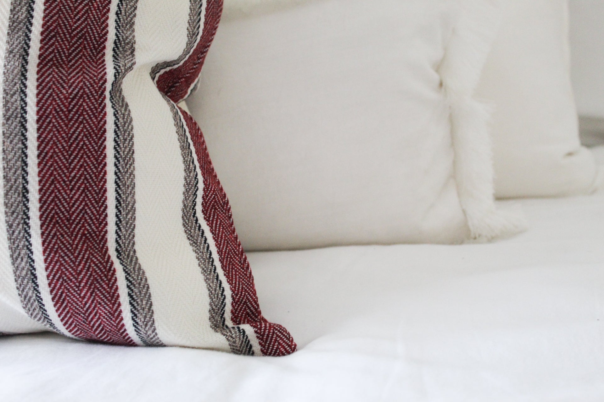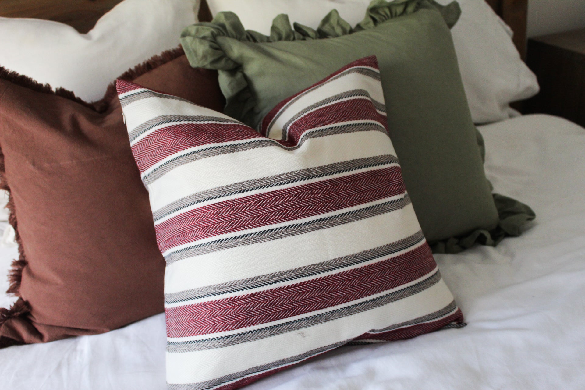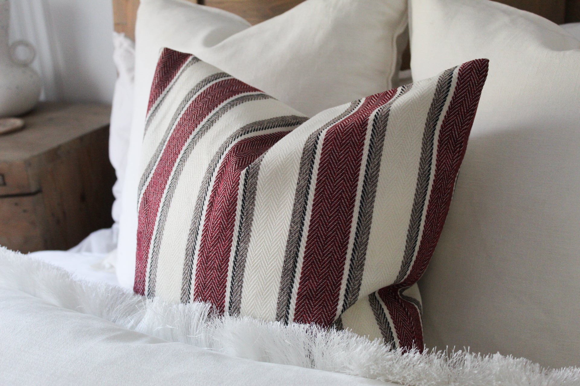Red stripe tweed effect cotton cushion 45x45cm