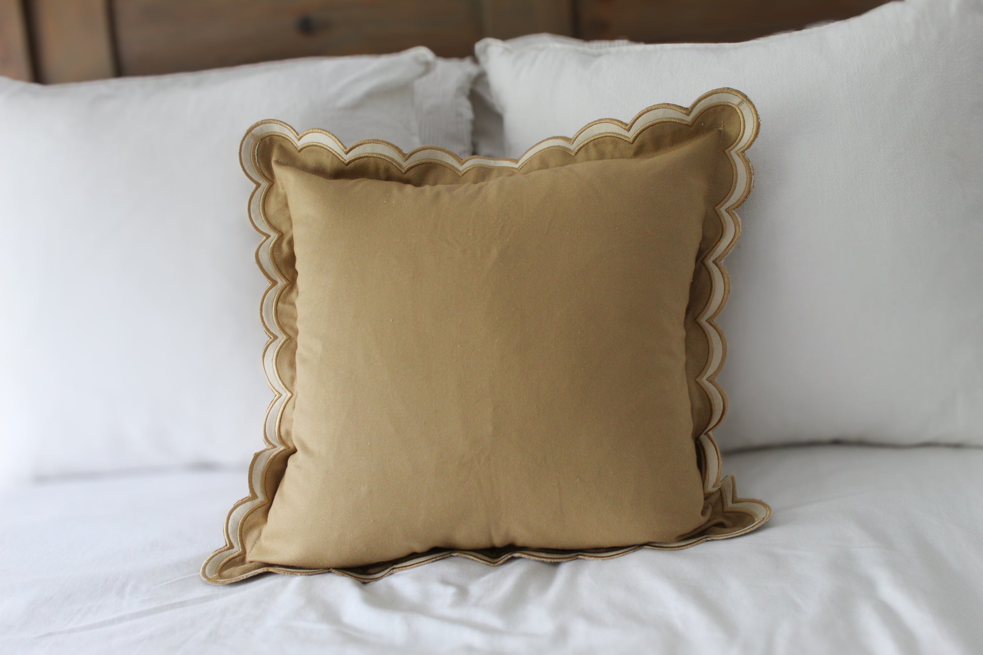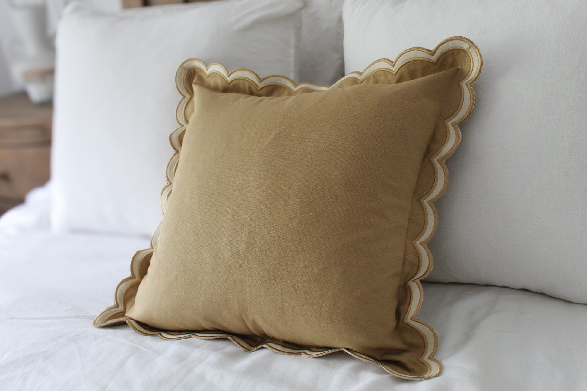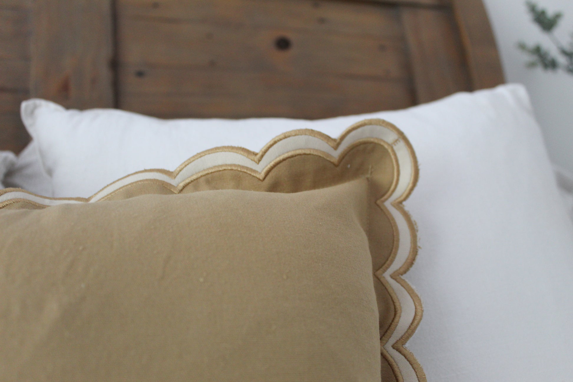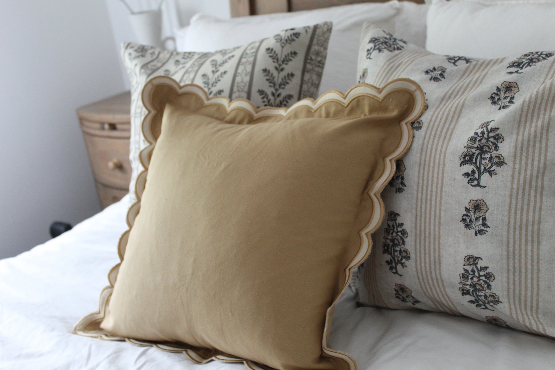 This beautiful modern minimalistic beige scalloped cushion is perfect if you’re looking to add to your farmhouse and relaxing country interior.