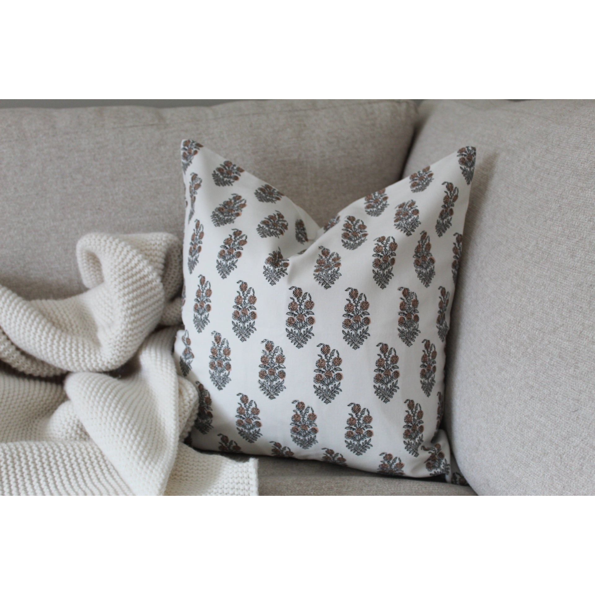 Back of the cushion is ivory with a hidden zip on the bottom