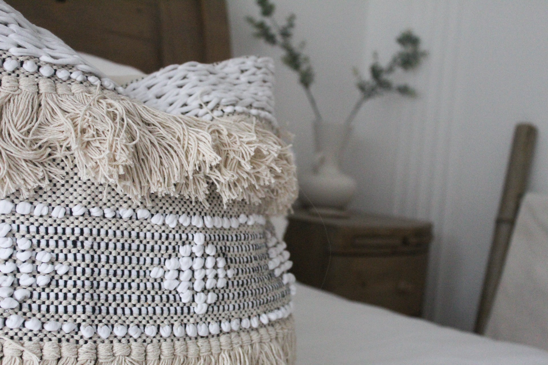 The wonderful natural white and beige embroidered Narla cushion is perfect if you’re looking to add to your contemporary and relaxing boho interior. The quality of this cushion is clearly beautifully made.