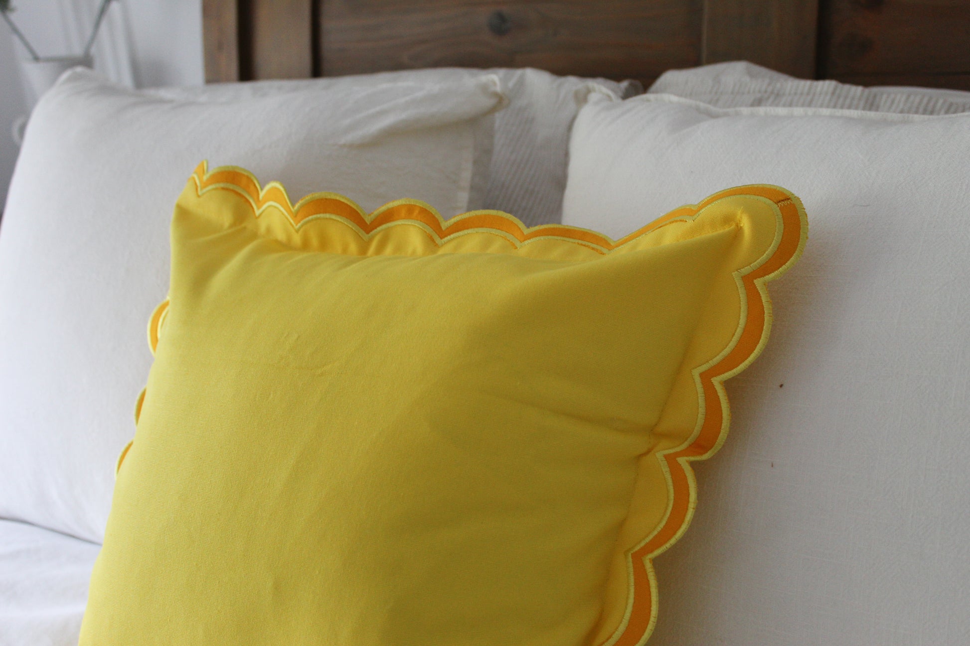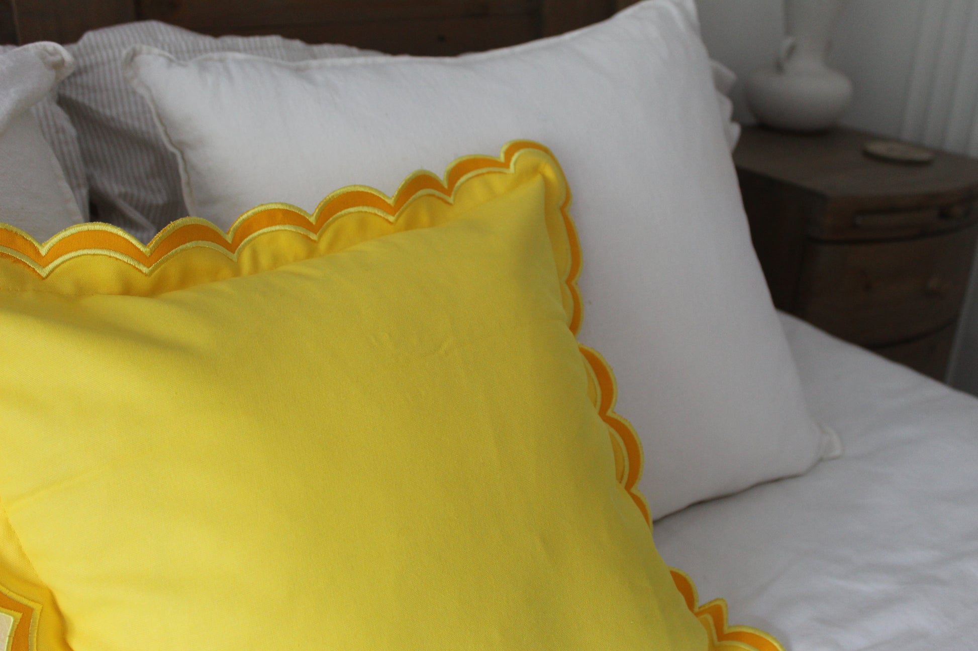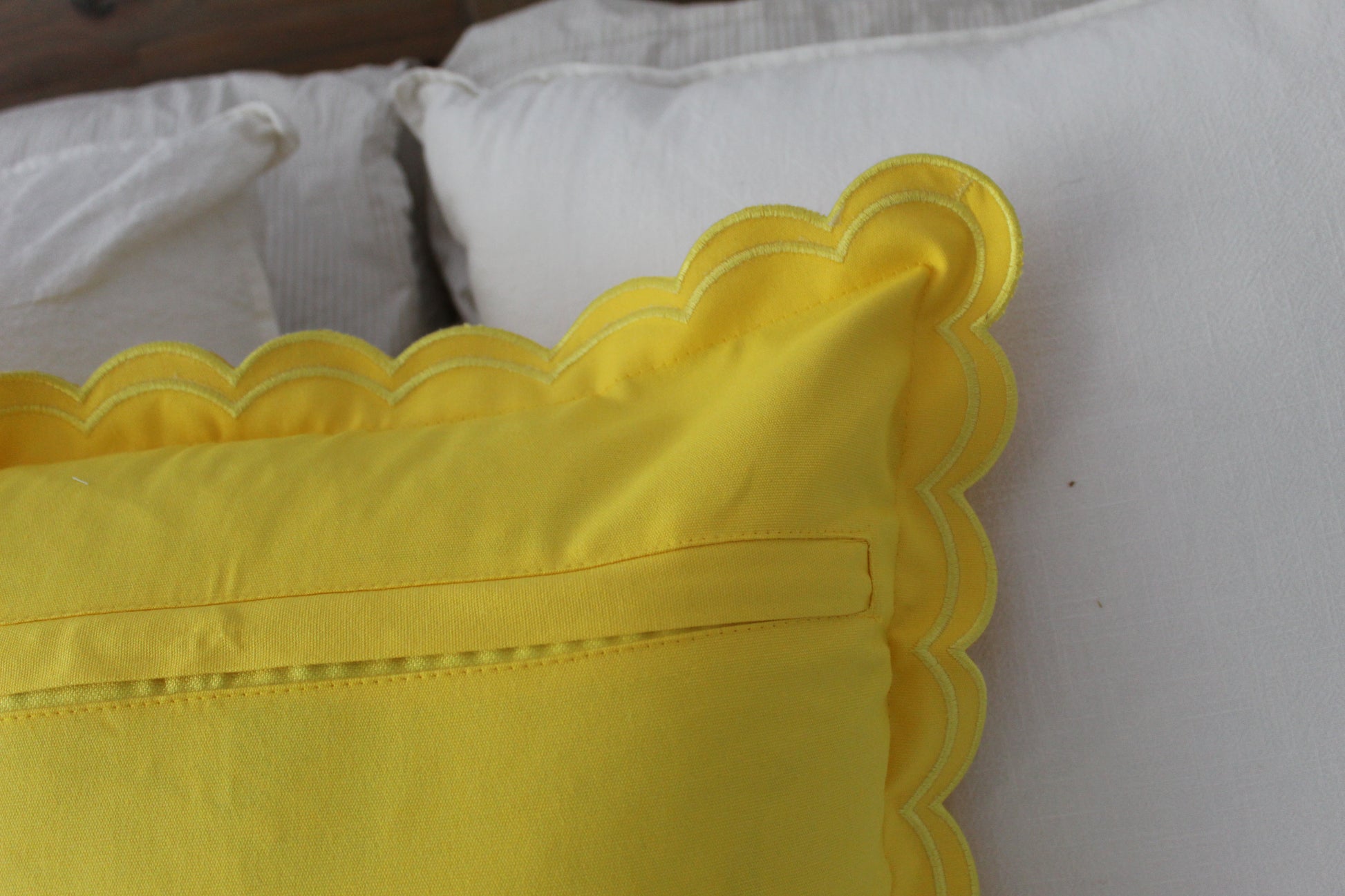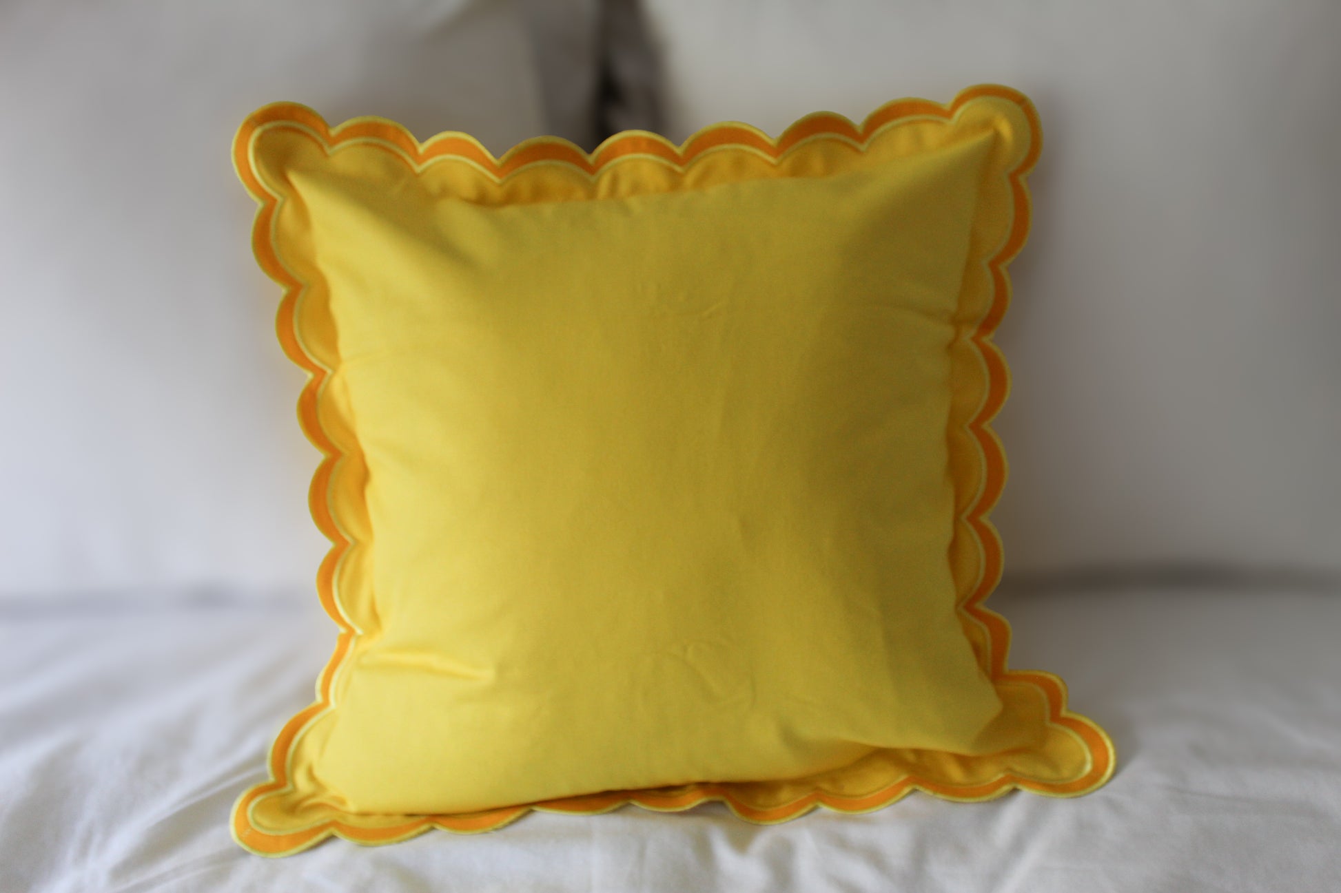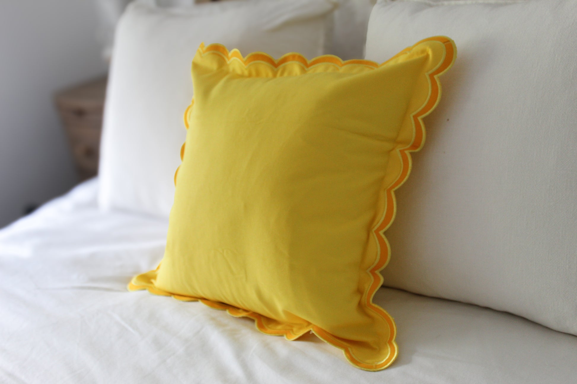 This beautiful modern minimalistic yellow scollopped cushion is perfect if you’re looking to add to your farmhouse and relaxing country interior.